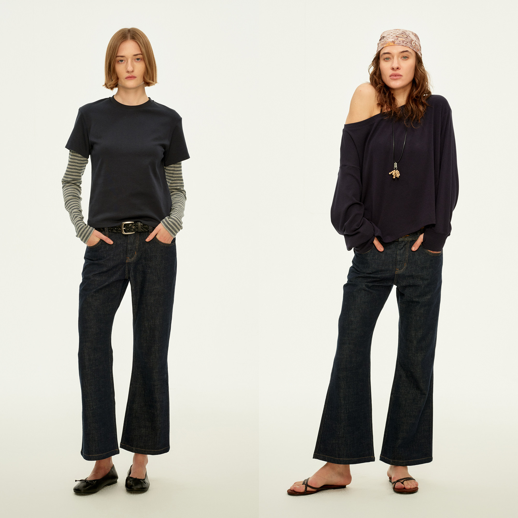 FIRSTFLOOR 明线设计高级感复古原牛修身显瘦七分喇叭牛仔裤女