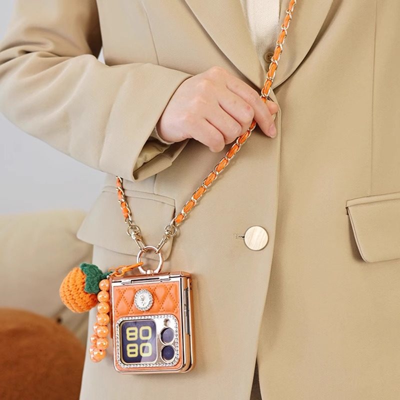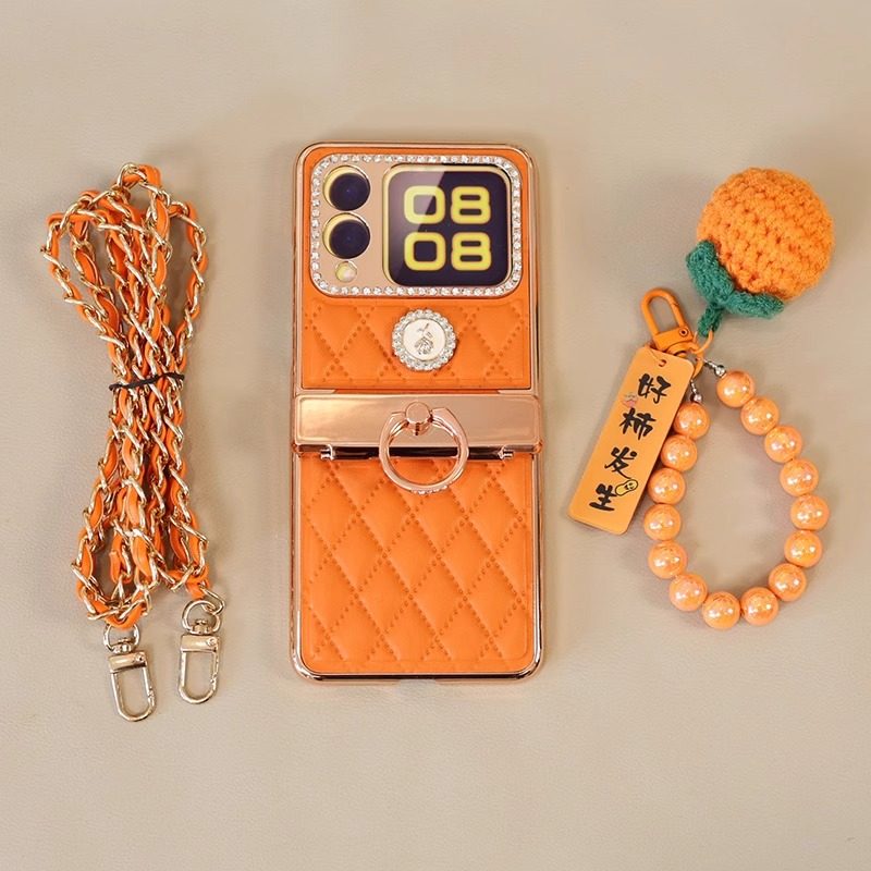 新款适用华为novaflip手机壳P50 Pocket全包斜挎Pocket 2折叠防摔女Pocket S挂件N2N3镶钻三星 Flip6543高档