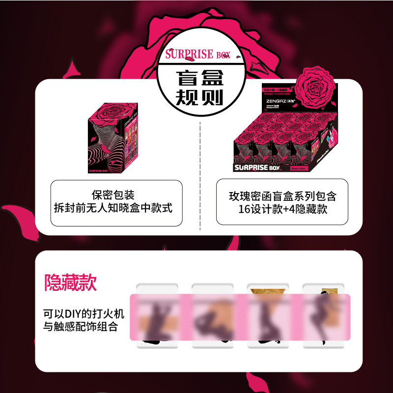 爆款ZENGAZ英伽玫瑰密函2支装惊喜盒充气打火机防风防爆高级礼物