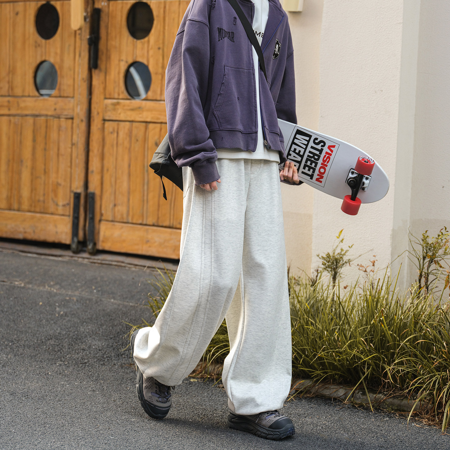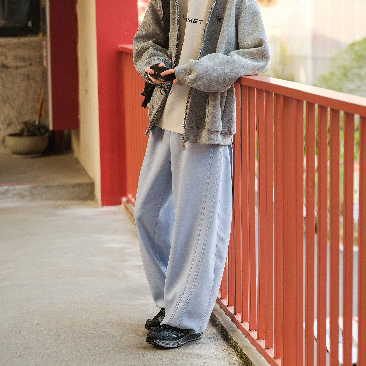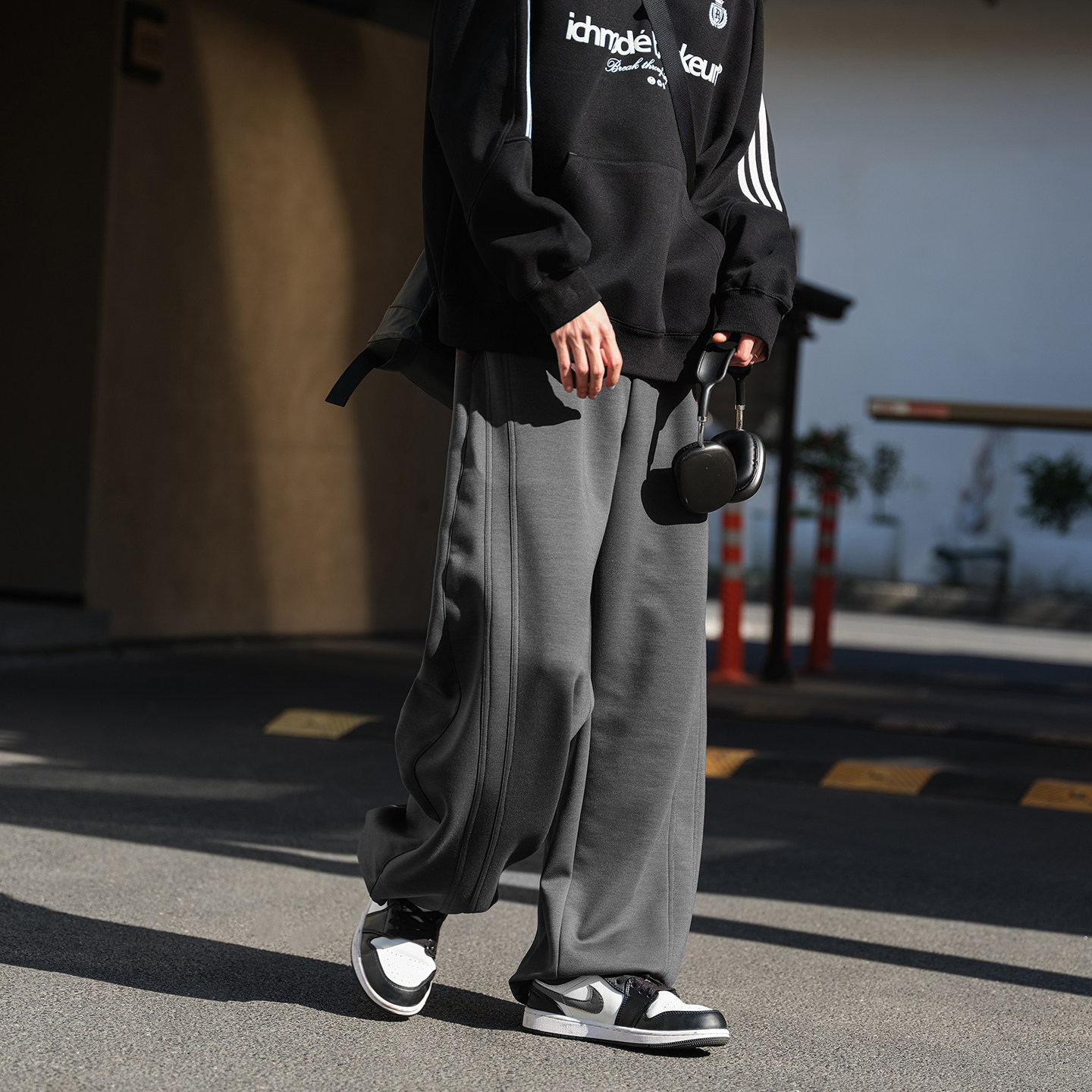 GOOZI MADE 灰色运动卫裤男春季直筒休闲裤日系宽松垂感弯刀裤子