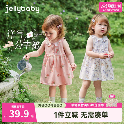 [7A抗菌]女童夏日裙子A类纯棉连衣裙背心裙夏装女宝小公主裙薄款