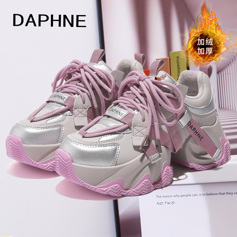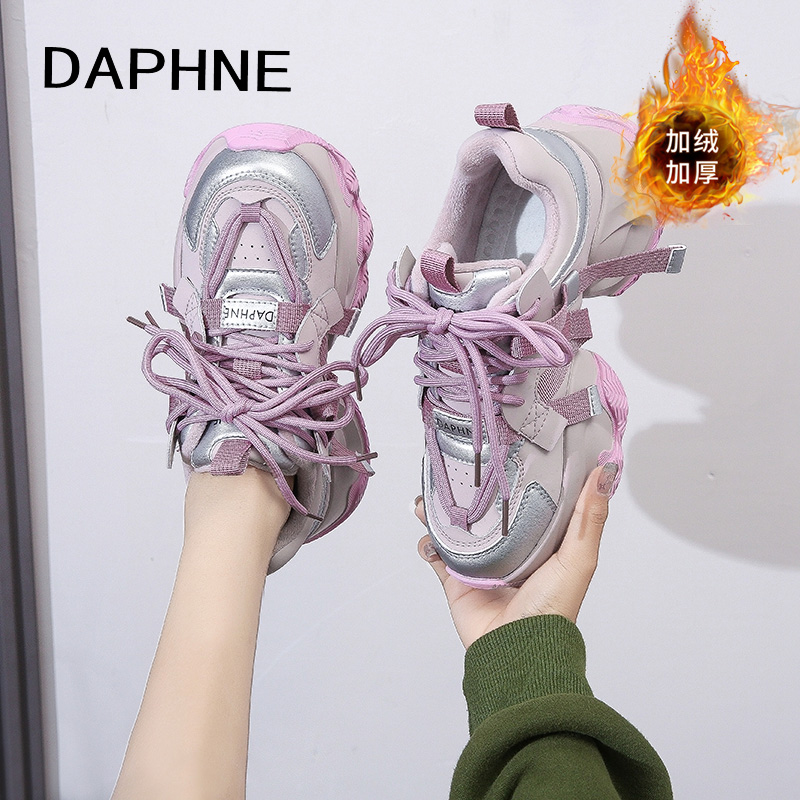 达芙妮厚底老爹鞋女2025冬季新款时尚百搭加绒加厚休闲鞋运动鞋