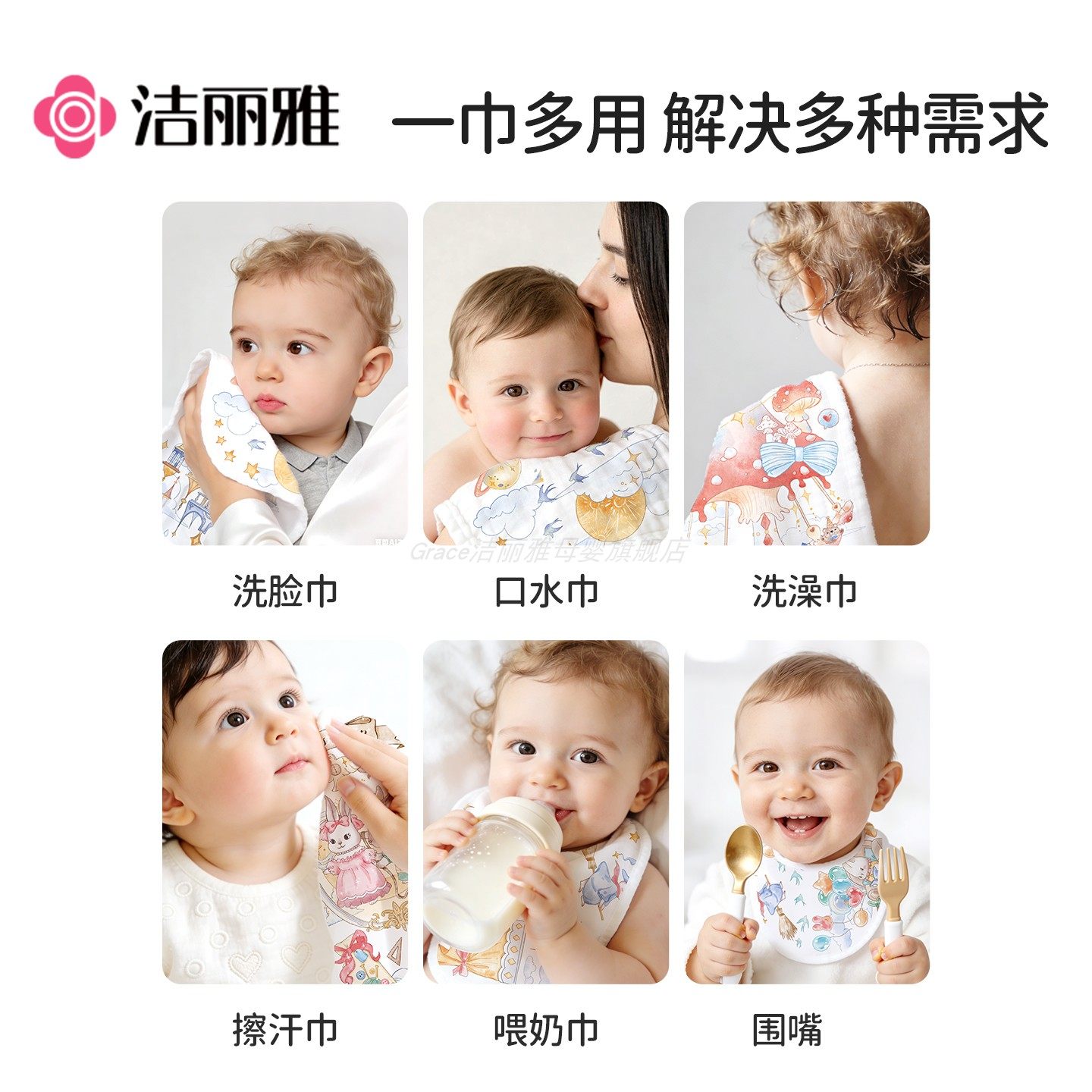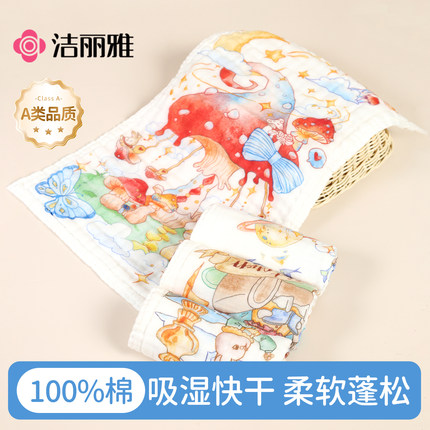 洁丽雅口水巾婴儿纯棉纱布宝宝儿童洗脸巾新生儿毛巾六层A类超软