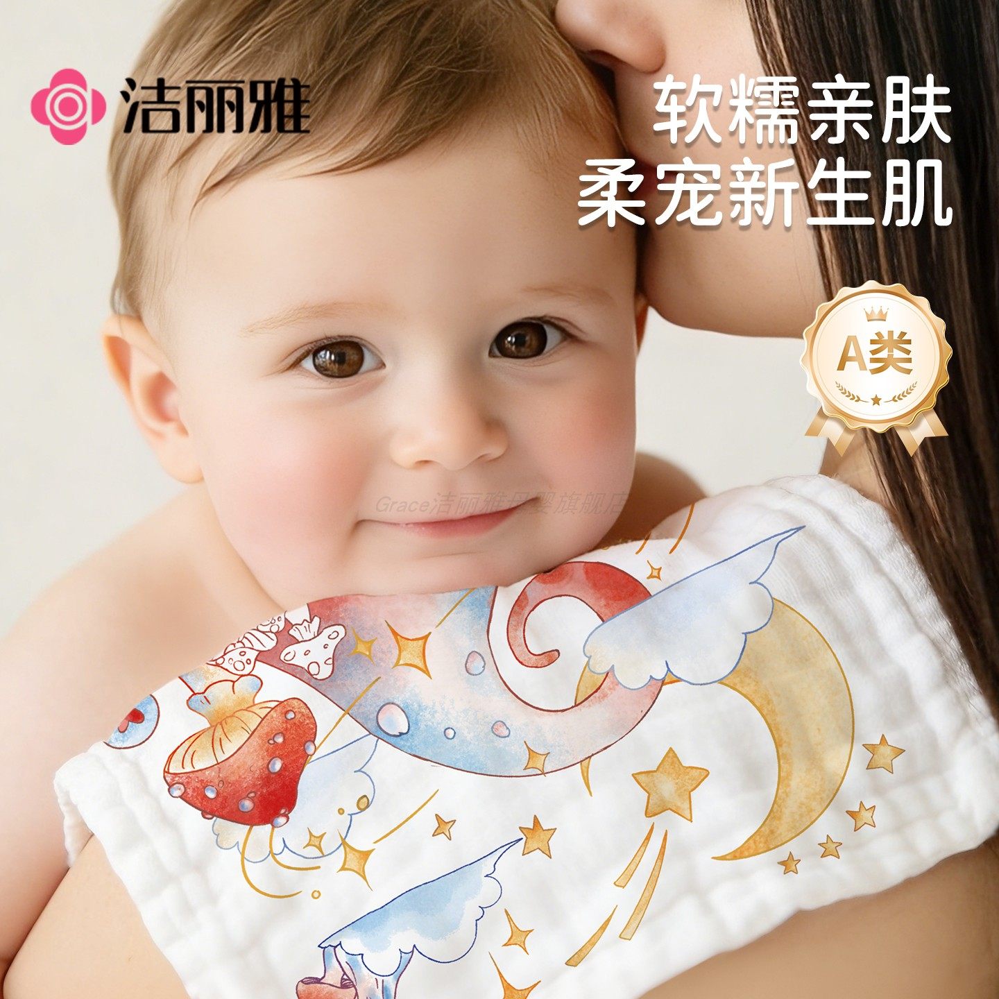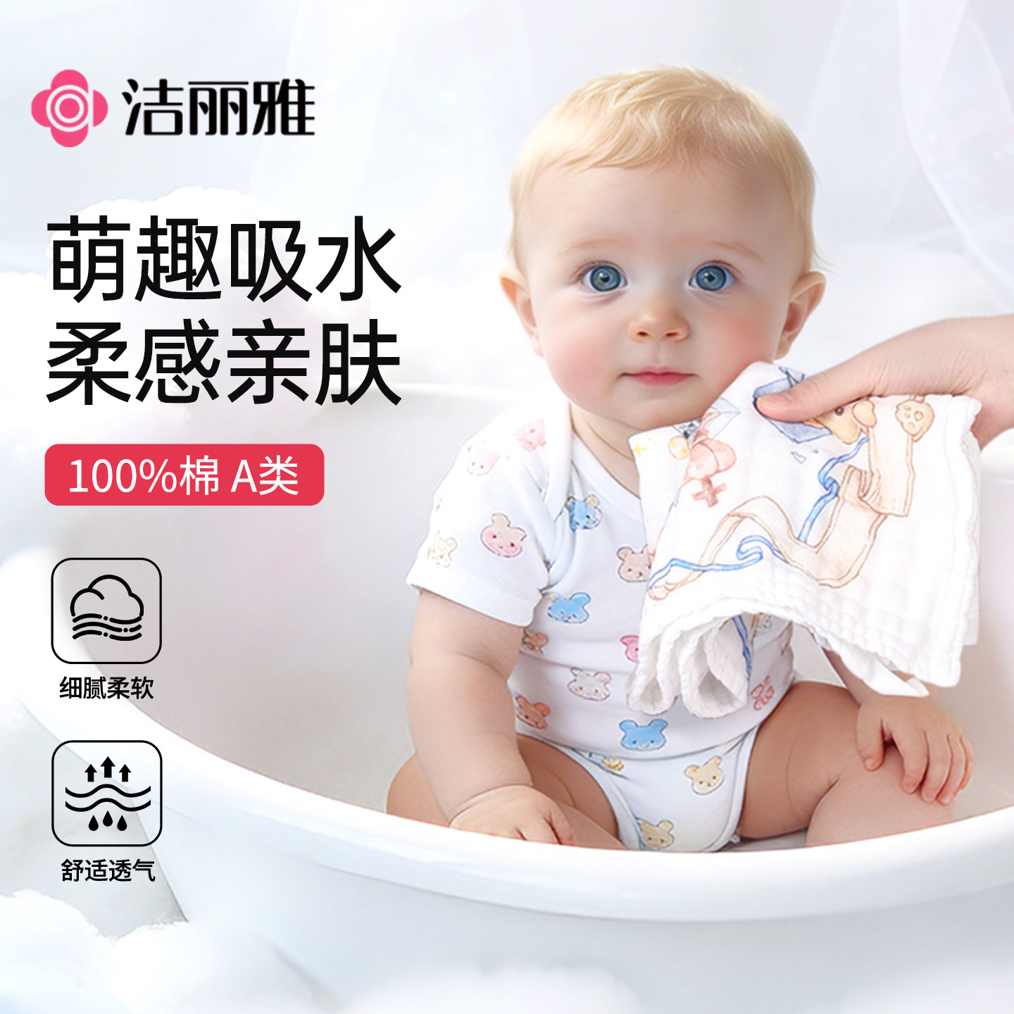 洁丽雅口水巾婴儿纯棉纱布宝宝