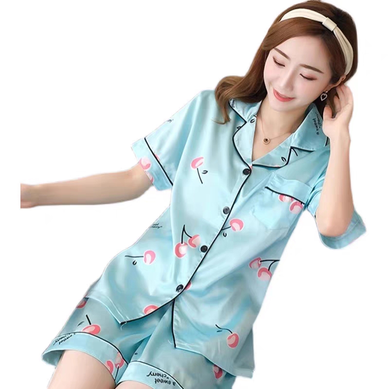 睡衣女夏季冰丝短袖韩版可爱两件套可外穿性感春夏加大短裤家居服