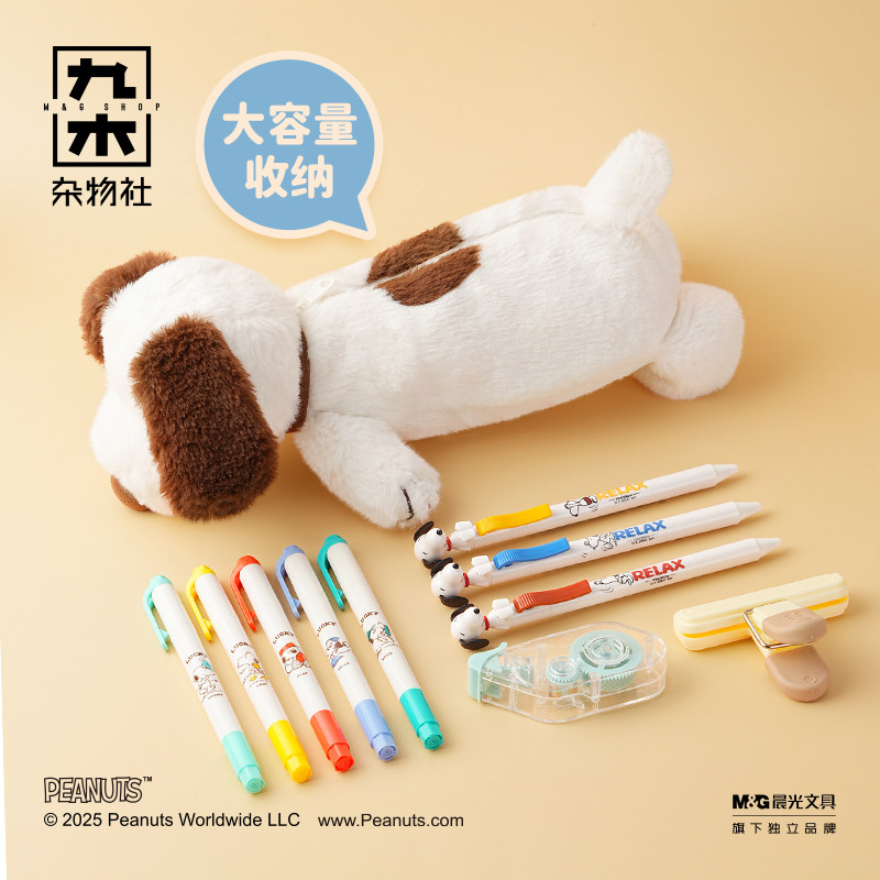 九木杂物社史努比可爱毛绒小狗笔袋大容量学生收纳袋铅笔盒文具盒