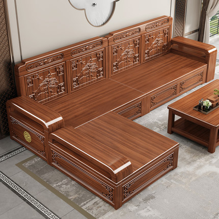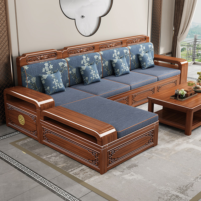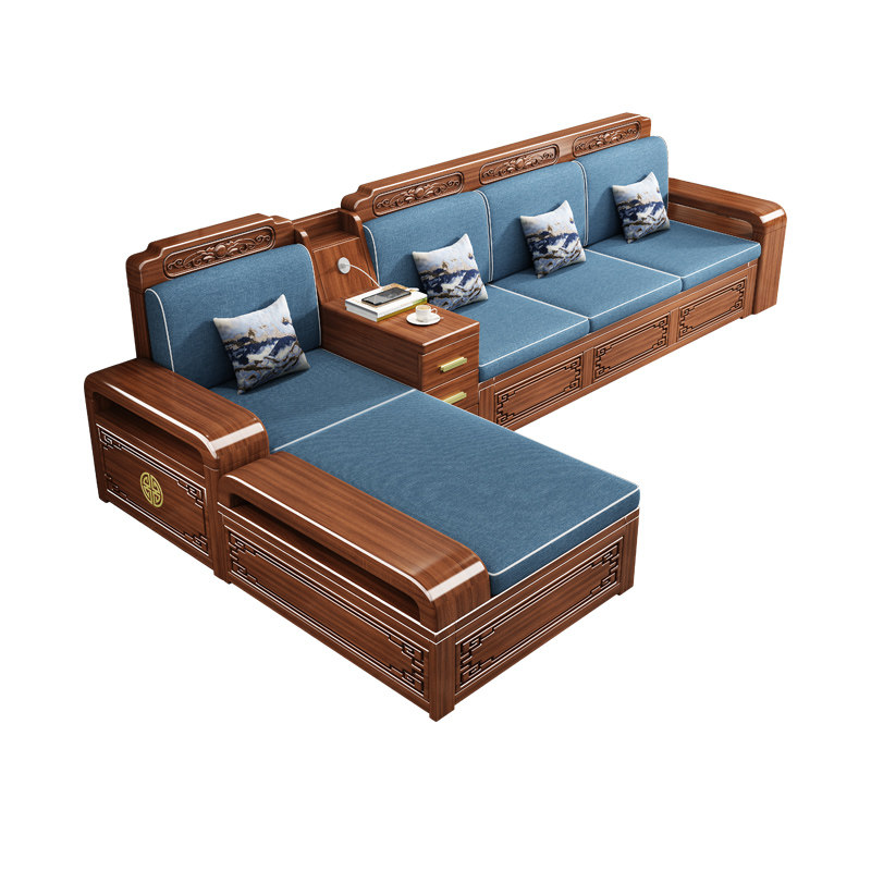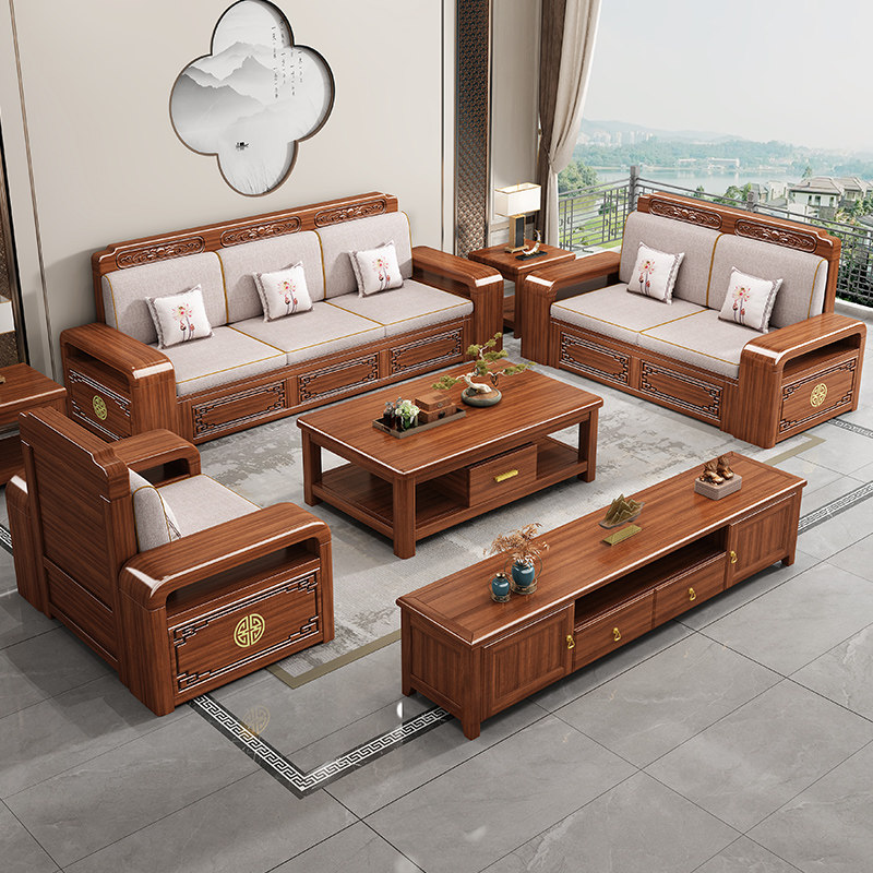 新中式金丝胡桃木实木沙发组合客厅现代简约大小户型储物木质沙发