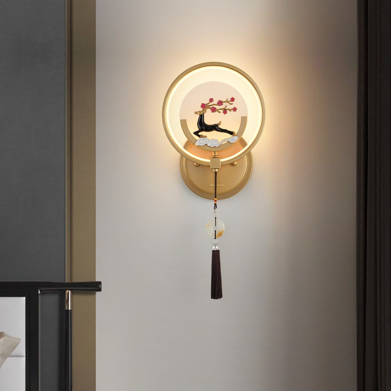 雷士照明led壁灯创意小鹿卧室床头灯圆形简约设计感ins现代过道灯