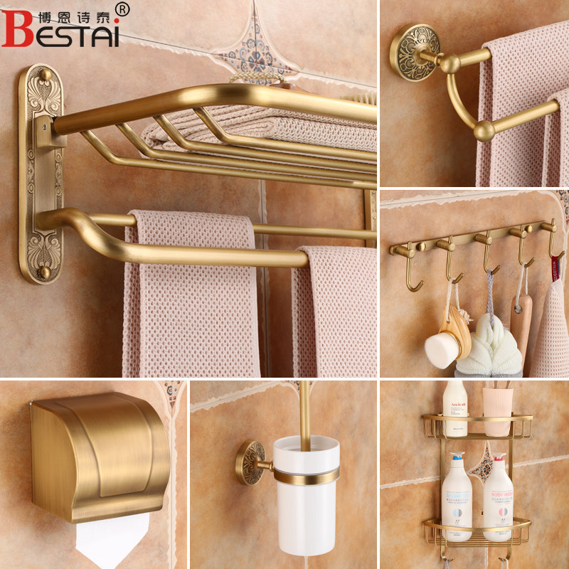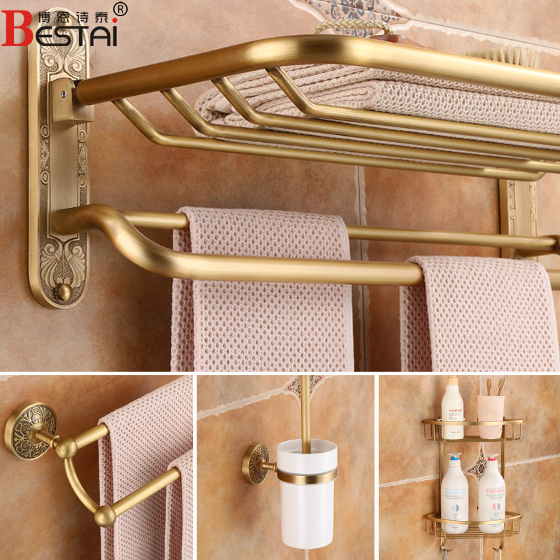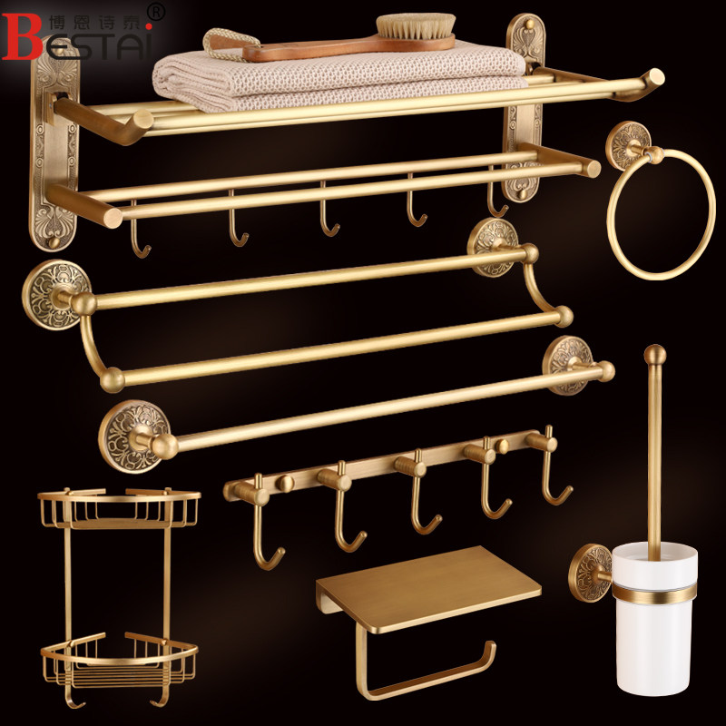 浴巾架博恩诗泰仿古免打孔全铜