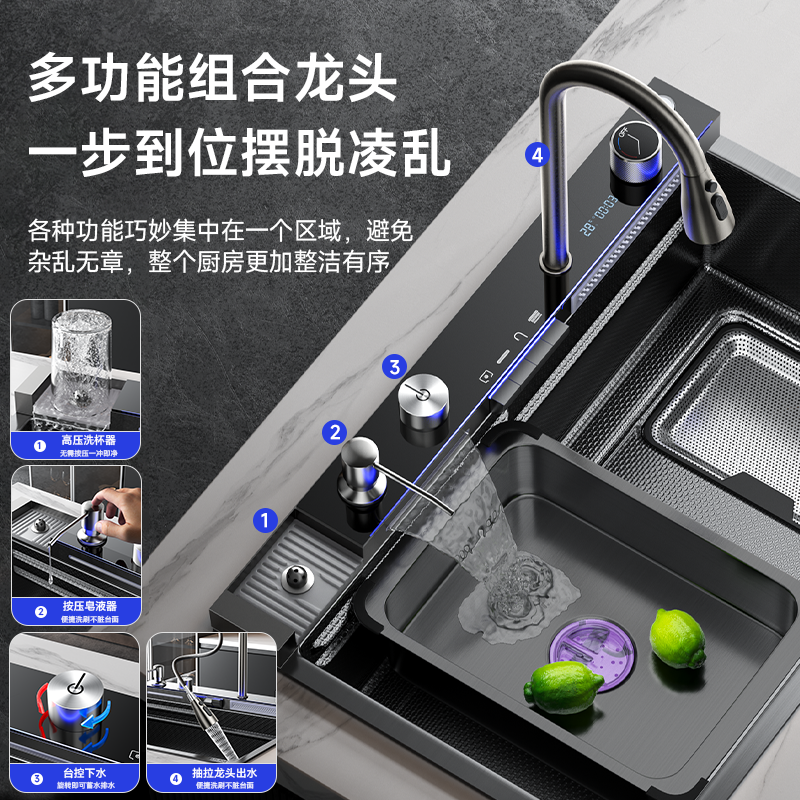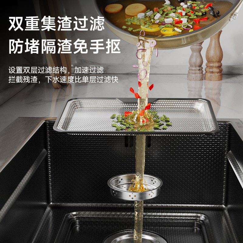 OUPAI厨房集渣水槽鲸鱼飞雨过滤器加厚大单槽家用304不锈钢洗碗池