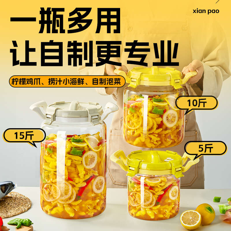 腌菜罐子冰箱泡菜坛子柠檬鸡爪小海鲜保鲜盒酵素瓶家用玻璃密封罐