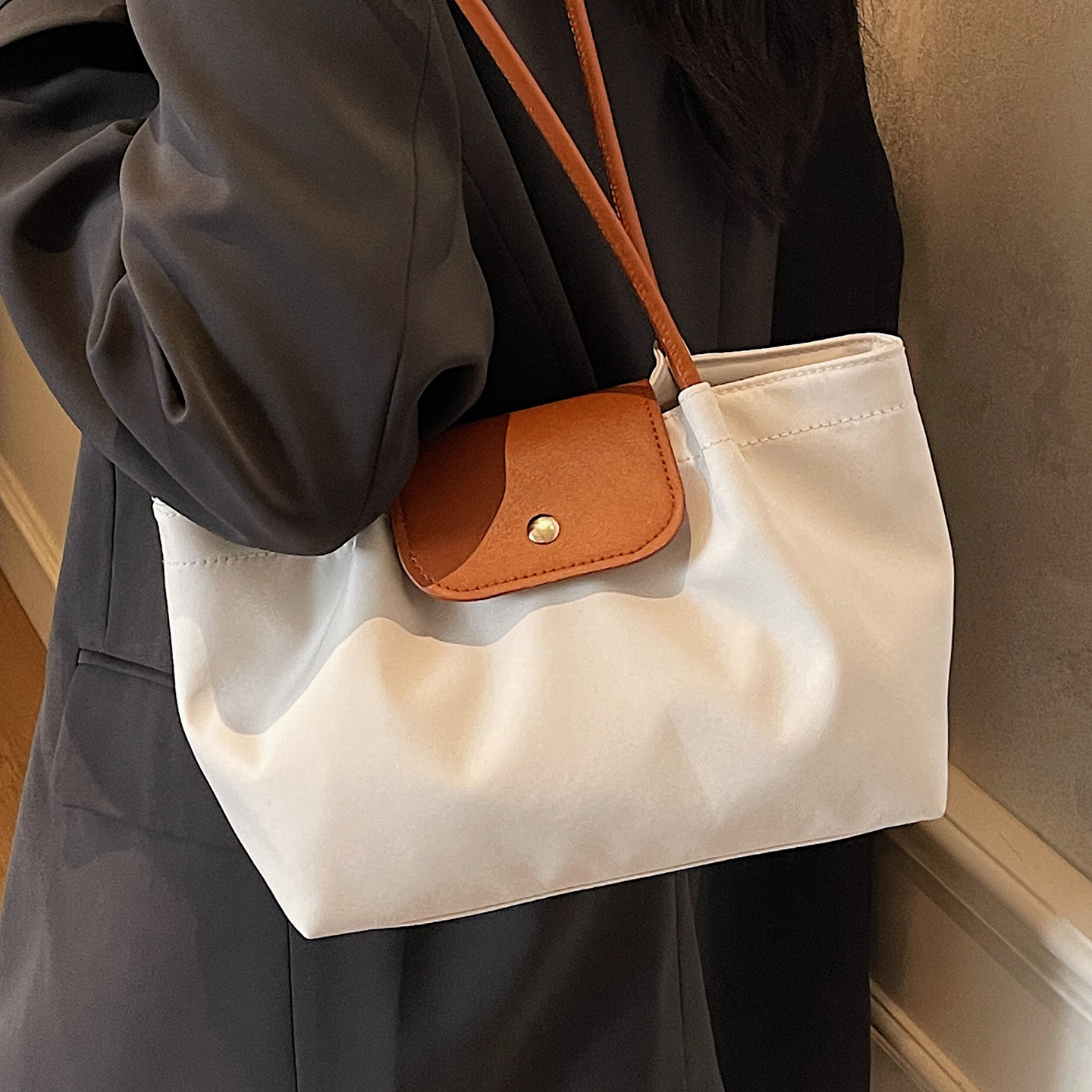 今年流行休闲时尚腋下包女2026新款百搭撞色秋冬牛津布通勤单肩包