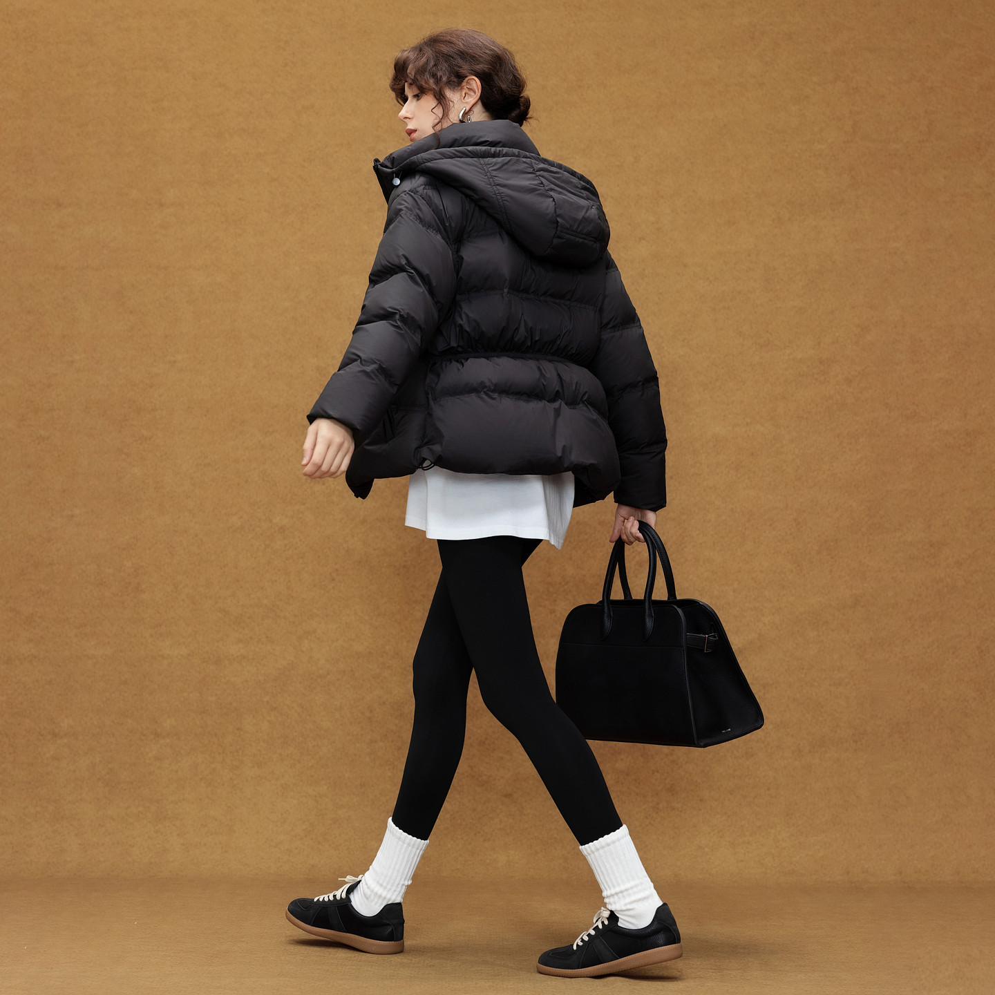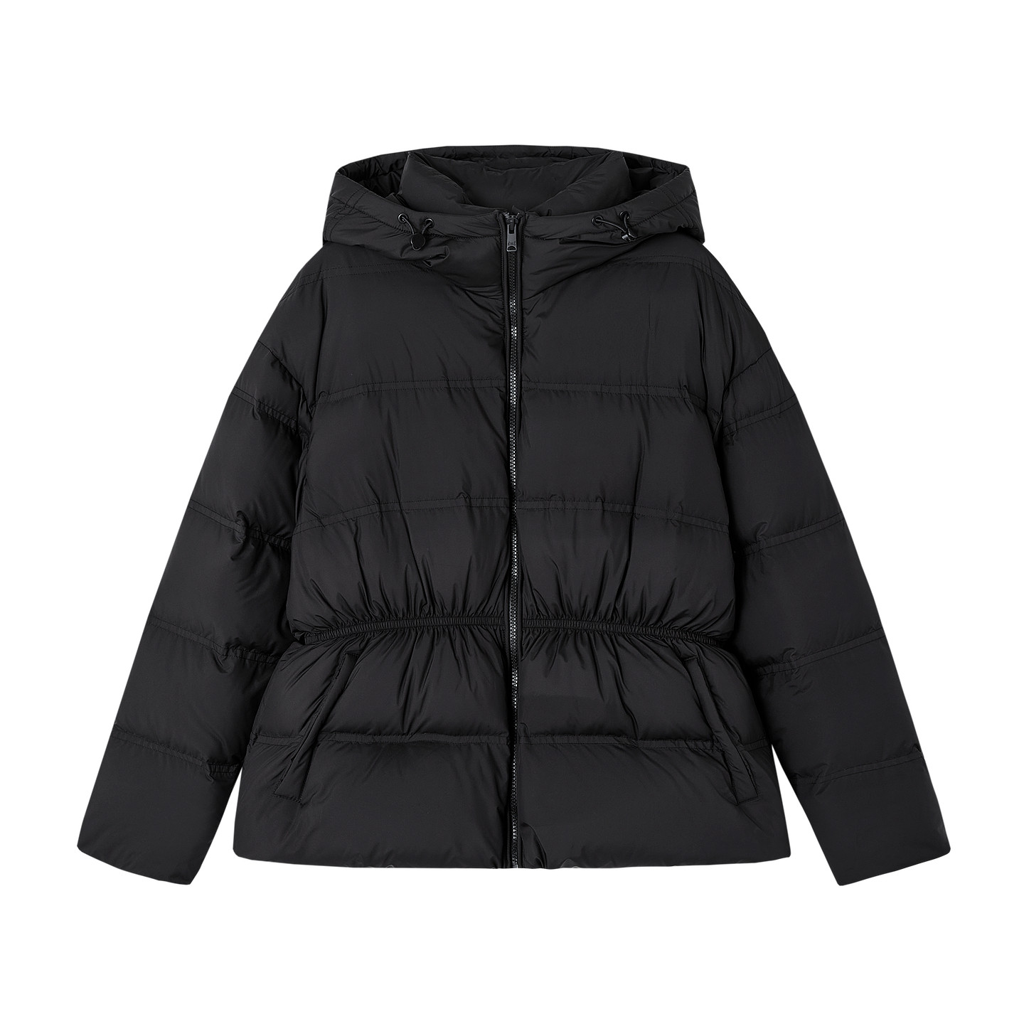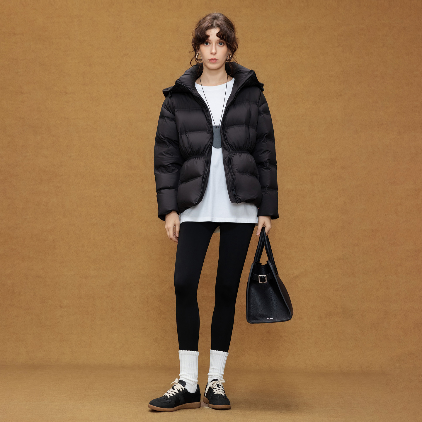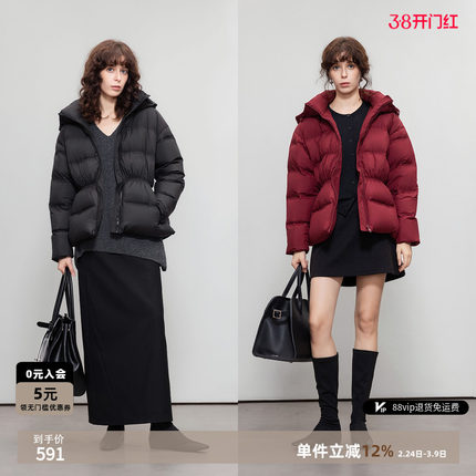 德玛纳通勤风90鸭绒连帽羽绒服女25冬季新款橡筋收腰气质保暖外套