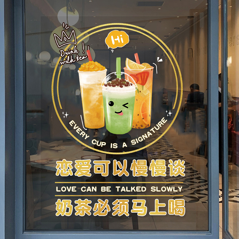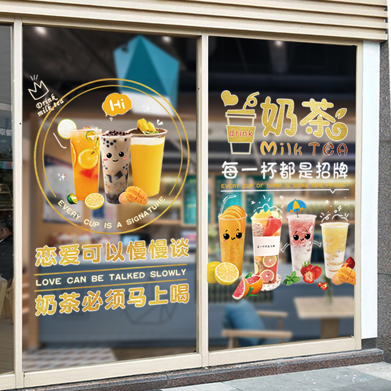 奶茶店玻璃门贴纸创意网红咖啡饮品冷饮店橱窗墙壁装饰广告墙贴画