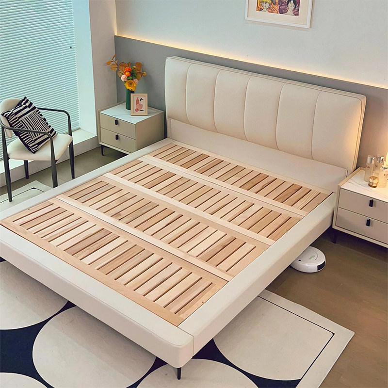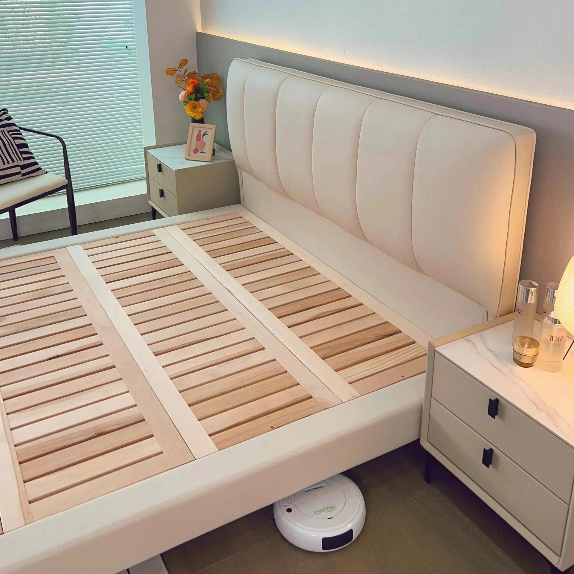 床现代简约榉木床高箱储物收纳床双人大床薄床头小户型主卧真皮床