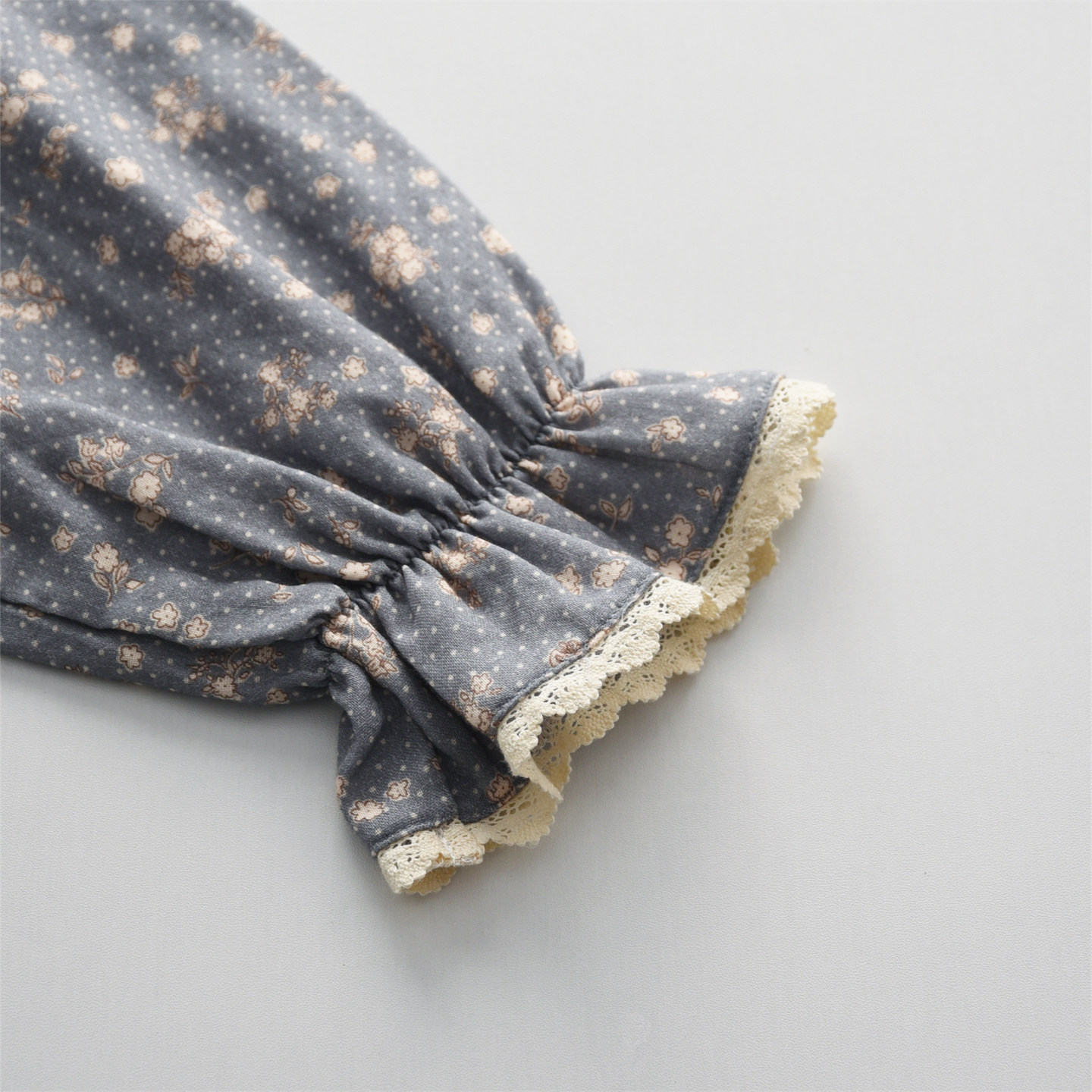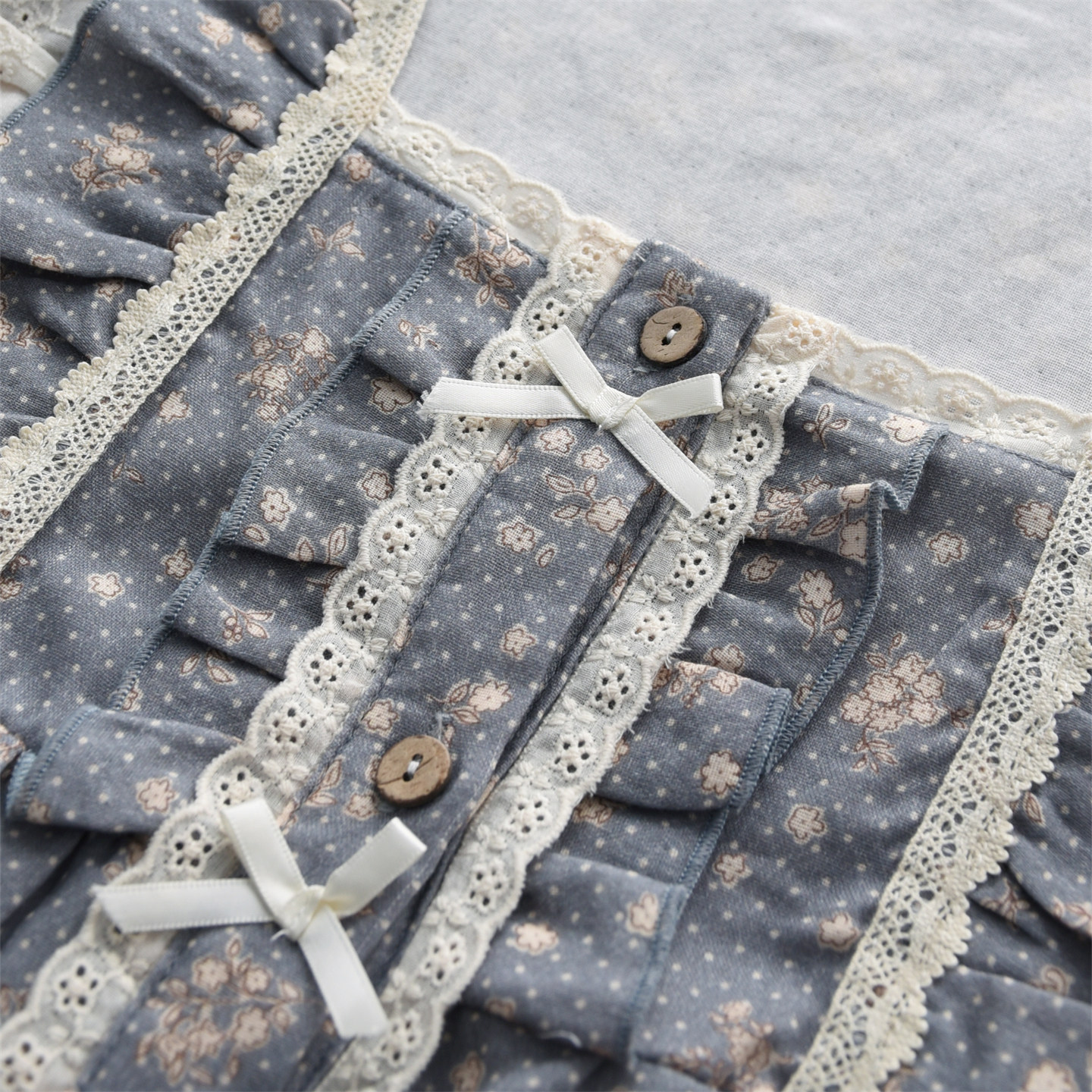 甜美花边花海数码印花睡衣女春夏季纯棉纱布双层薄款家居服套装