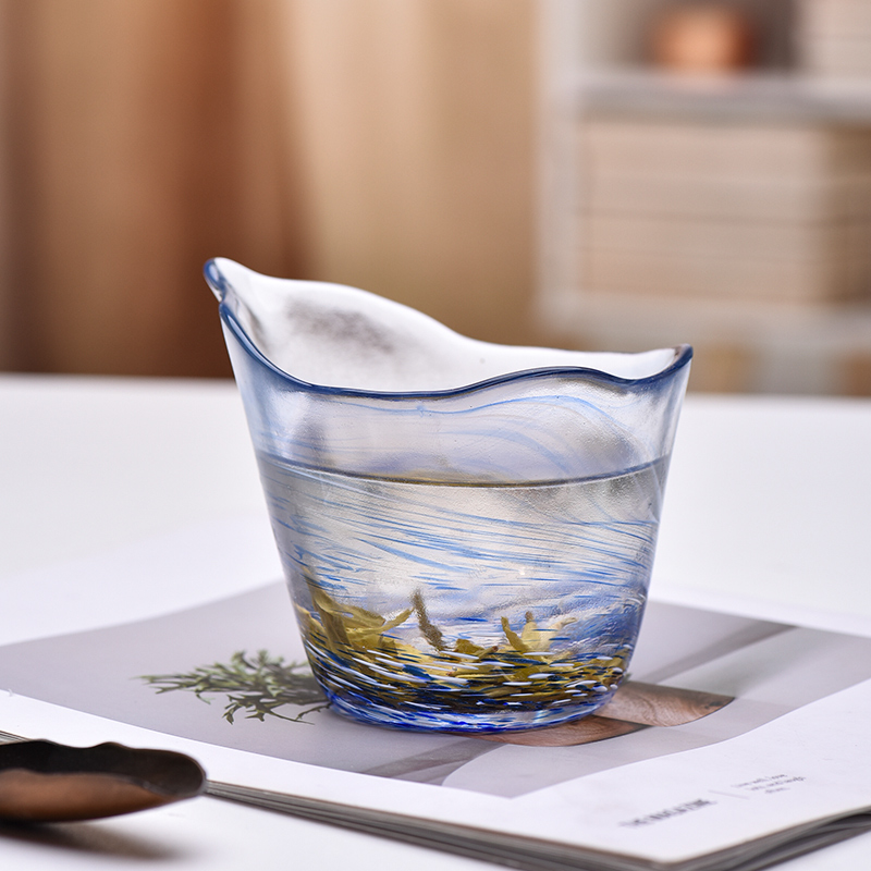 法兰晶日式手工喝茶杯品茶杯公道杯家用客厅花茶杯彩色无铅玻璃杯
