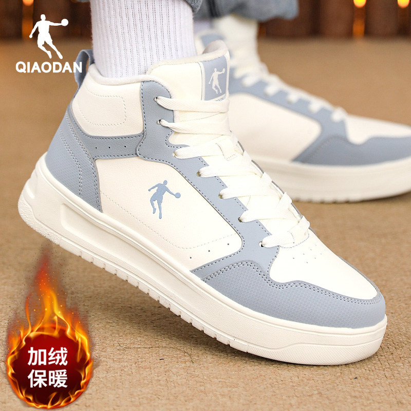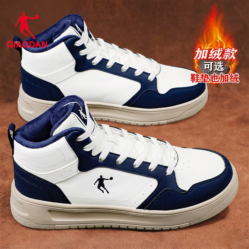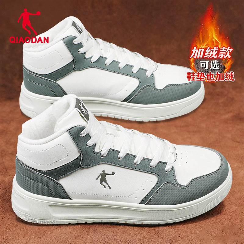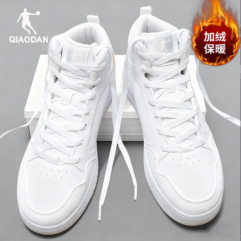 乔丹加绒加厚大棉鞋厚底小白板鞋皮面休闲鞋轻便百搭透气高帮鞋
