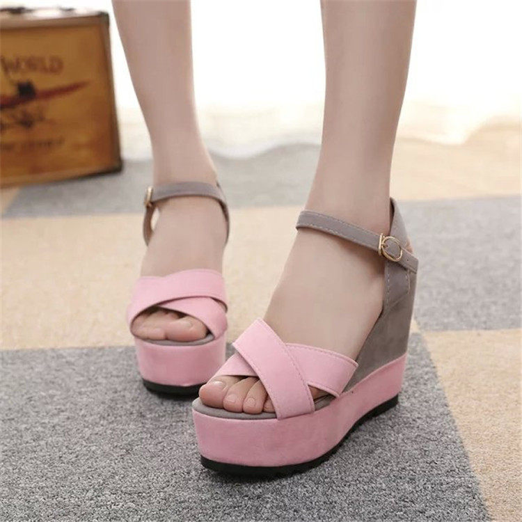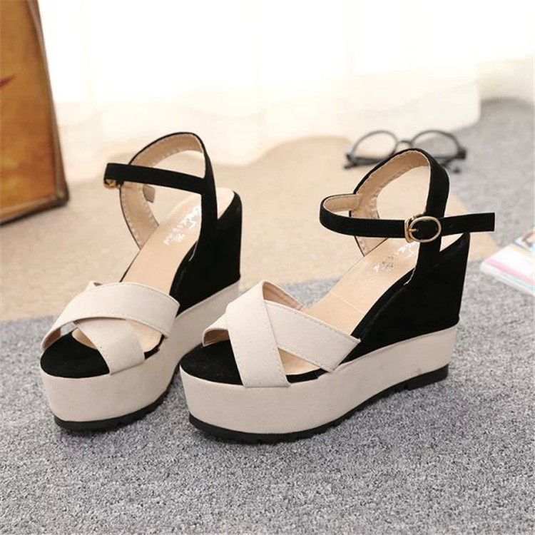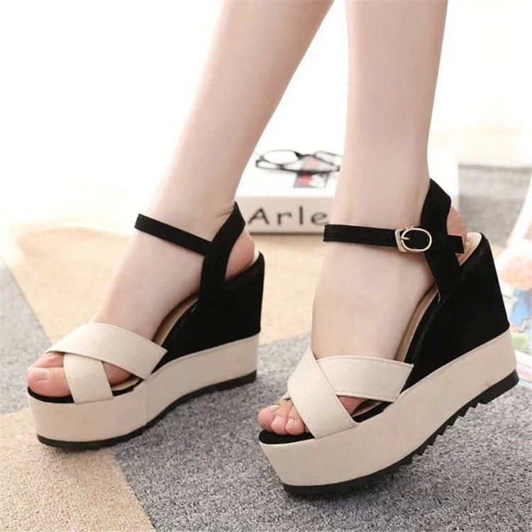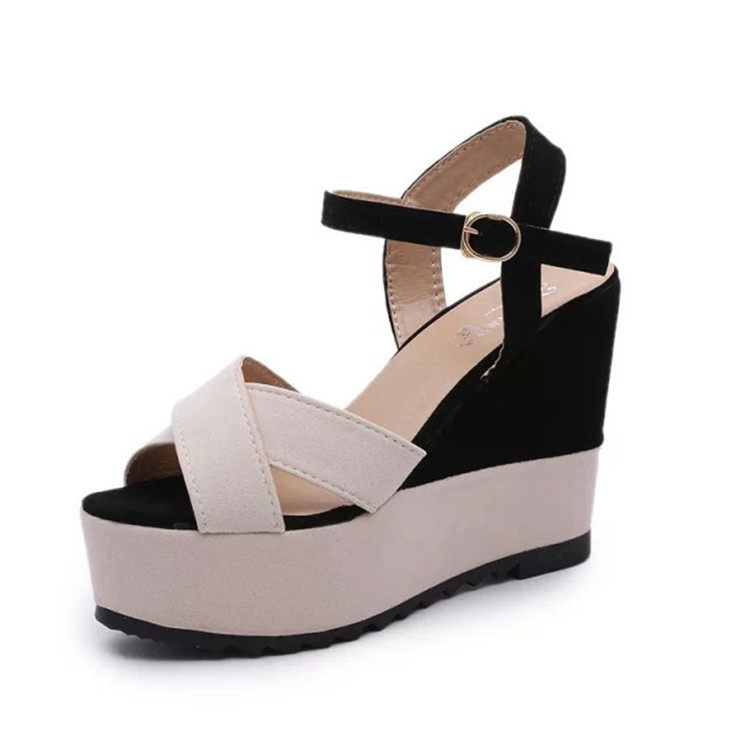 2019春季新款凉鞋厚底坡跟鱼嘴鞋时尚拼色超高跟罗马鞋子女鞋直销