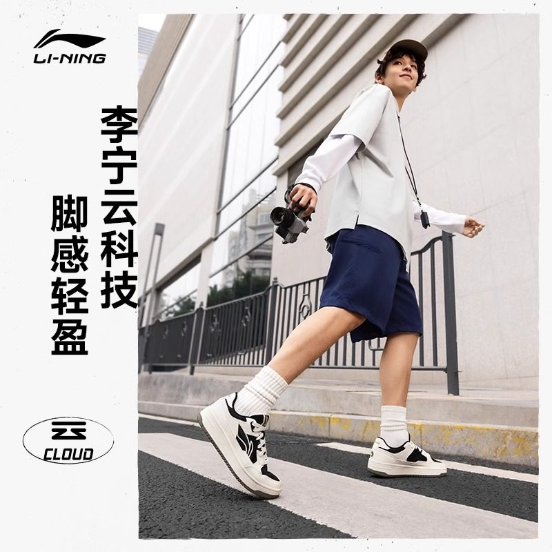 李宁天迹soft男板鞋夏季透气厚底增高百搭国潮黑白舒适运动鞋