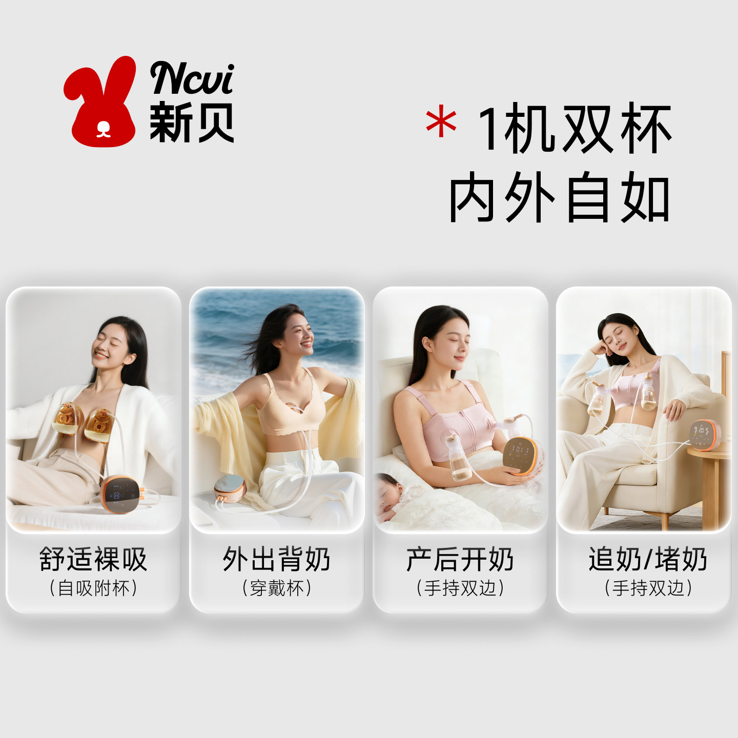 新贝双边免手扶裸吸吸奶器
