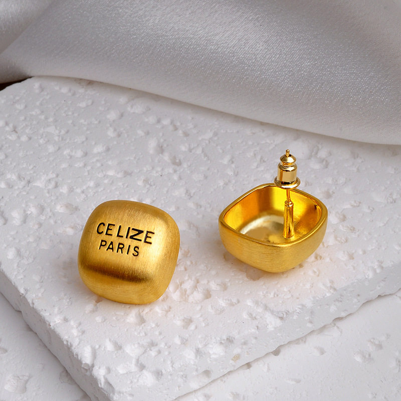 法式复古高级感耳饰轻奢气质哑光拉丝质感耳钉个性小众几何形耳环