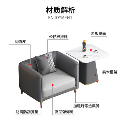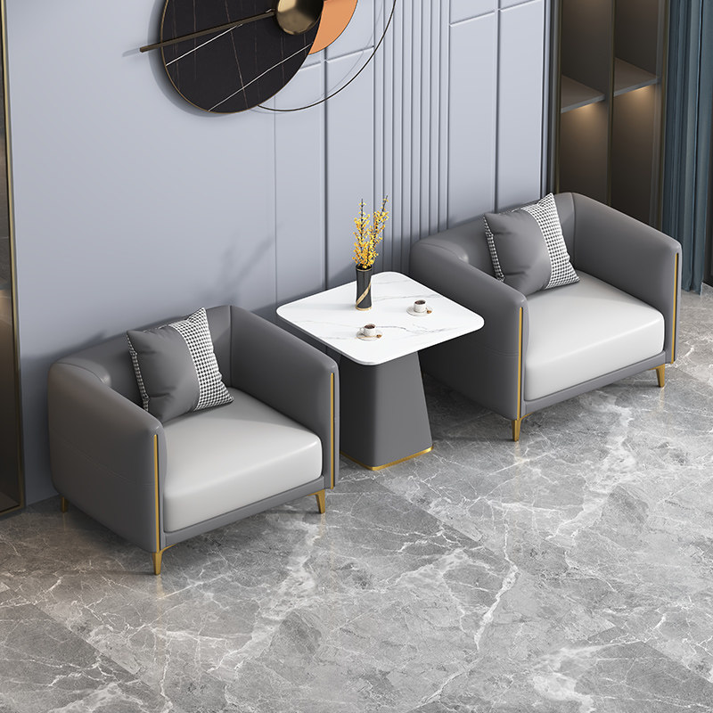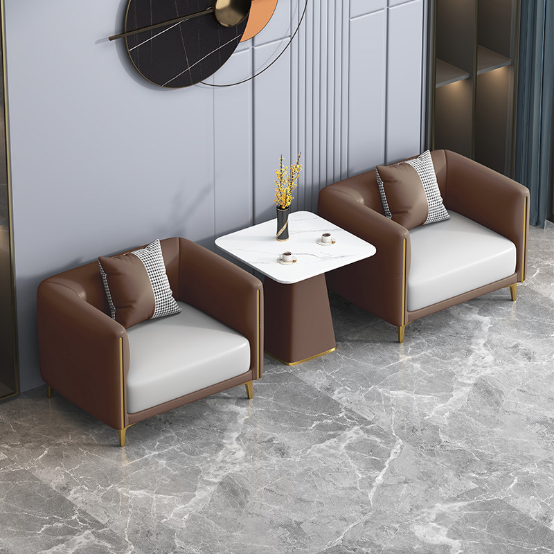 北欧简约休闲皮艺沙发茶几休息区商务酒店会客区洽谈接待桌椅组合