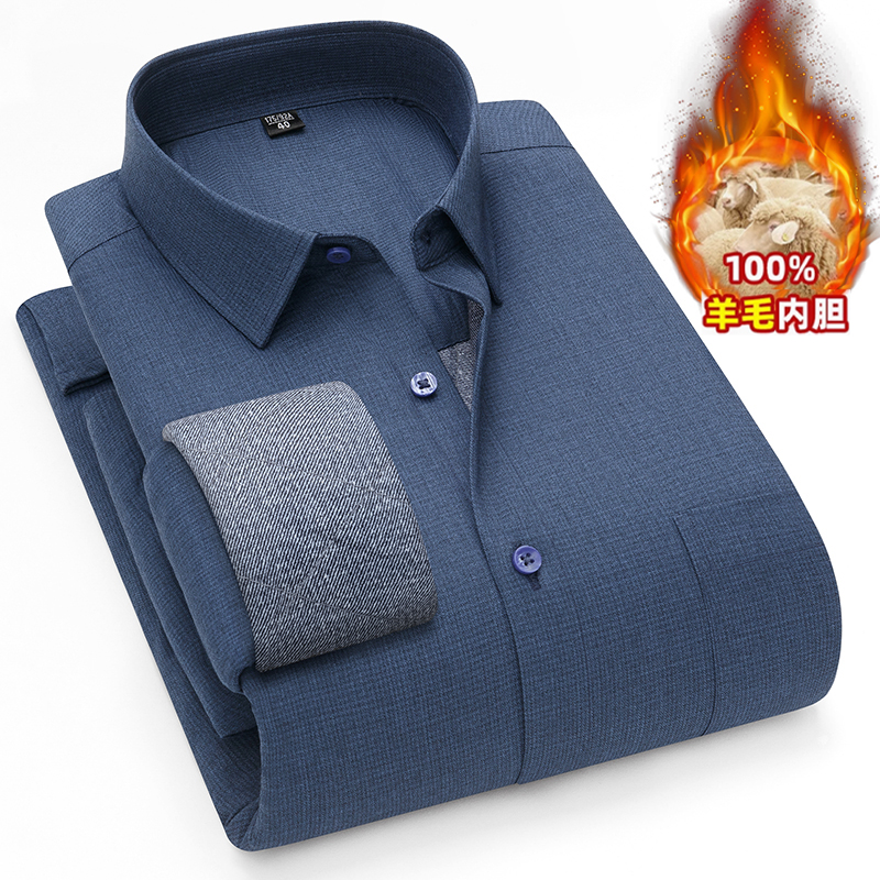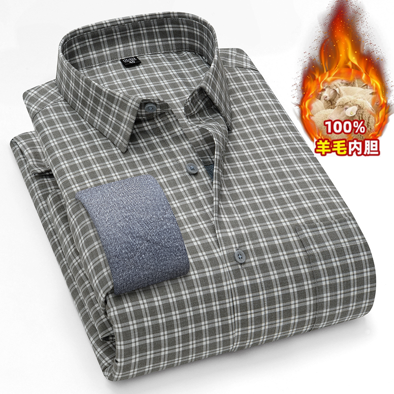 中老年纯羊毛内胆保暖衬衫男休闲格子加厚加绒中年男士衬衣秋冬季