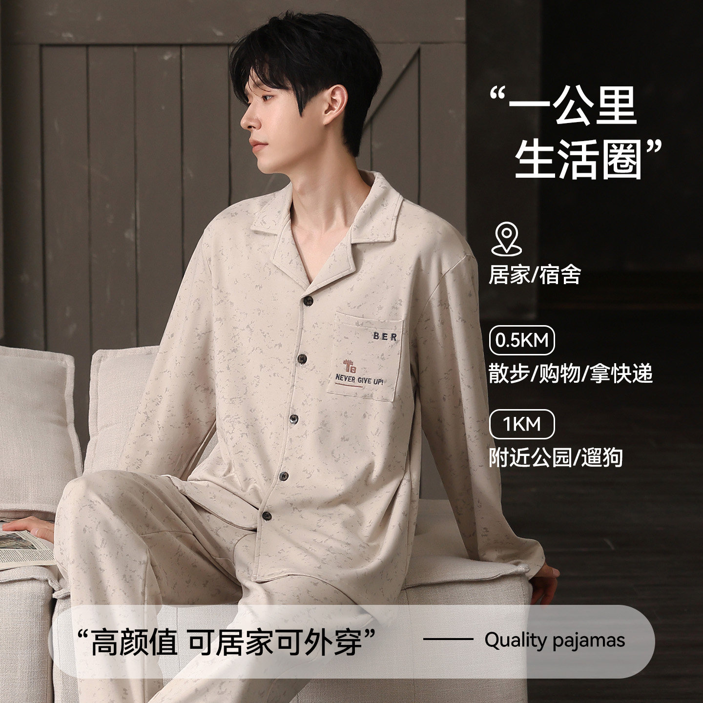 猫人优品纯棉男可外穿睡衣家居服