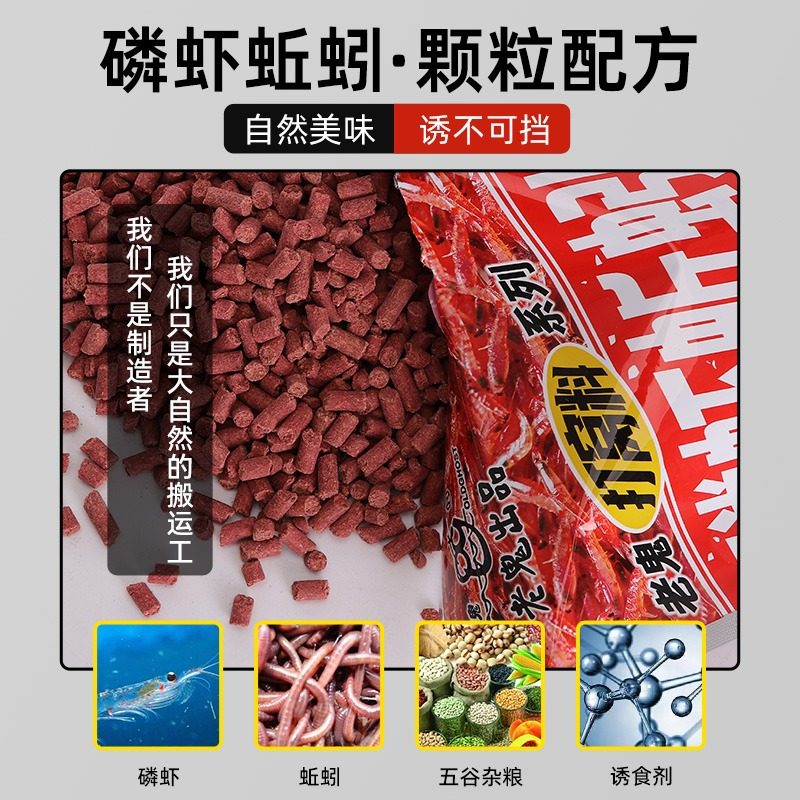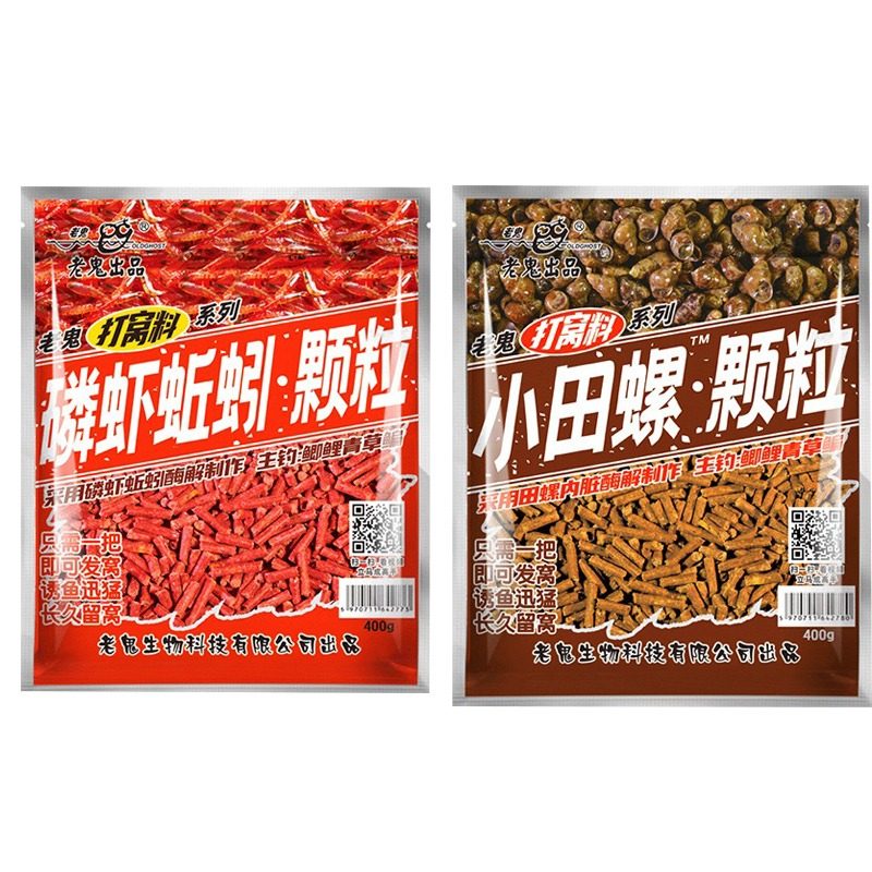 老鬼新品鱼饵磷虾蚯蚓小田螺颗粒饵料湖库野钓大体型鲫鲤青草鳊鱼