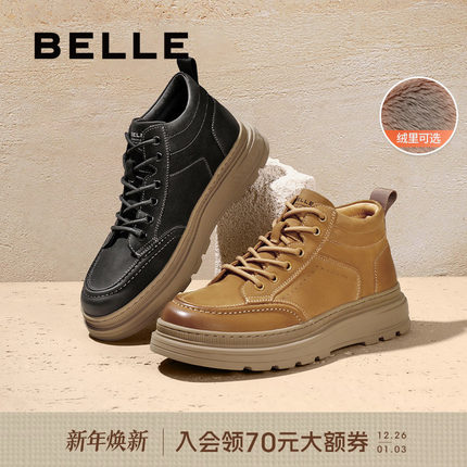 百丽冬季男鞋户外工装鞋保暖短靴子高帮休闲板鞋加绒棉鞋A1332DD3