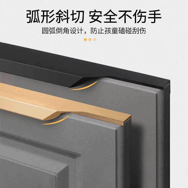 简约橱柜隐形拉手衣柜门把手免开槽轻奢柜门侧装封边加长拇指拉手