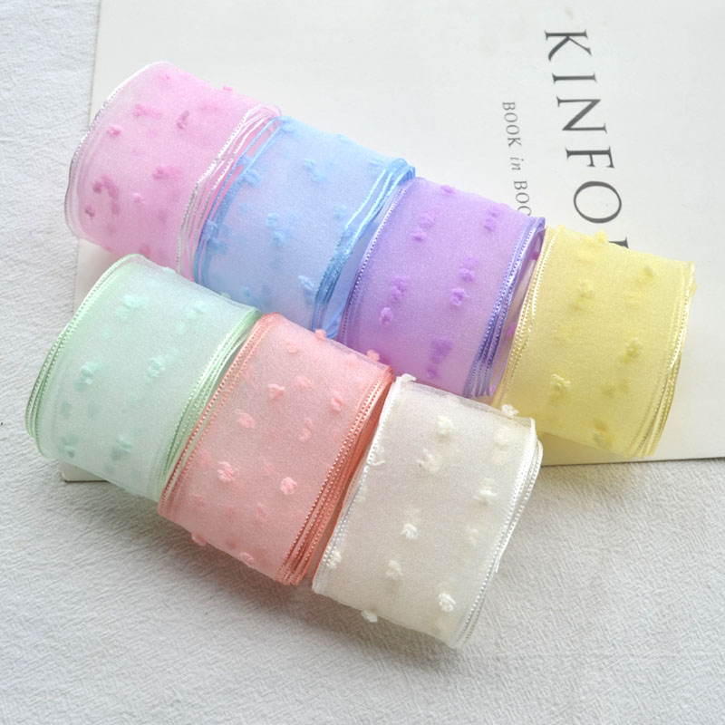 4CM压边绒点雪纱布艺带手工自制蝴蝶结发饰头饰材料DIY饰品配件
