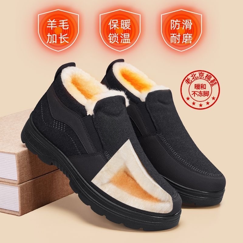 老北京布鞋冬季老人男棉鞋加厚保暖羊毛加绒中老年防水防滑爸爸鞋