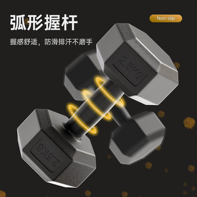 六角哑铃男士健身家用锻炼器材女学生宿舍小哑铃一对包胶亚玲套装