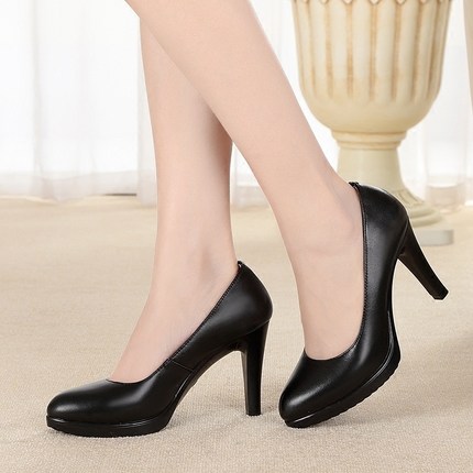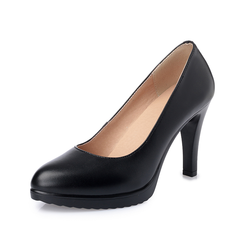 工作鞋女黑色高跟鞋春秋职业尖头细跟韩版酒店上班鞋旗袍鞋大码鞋