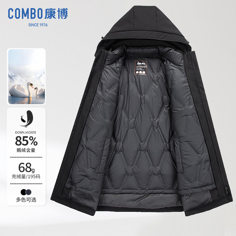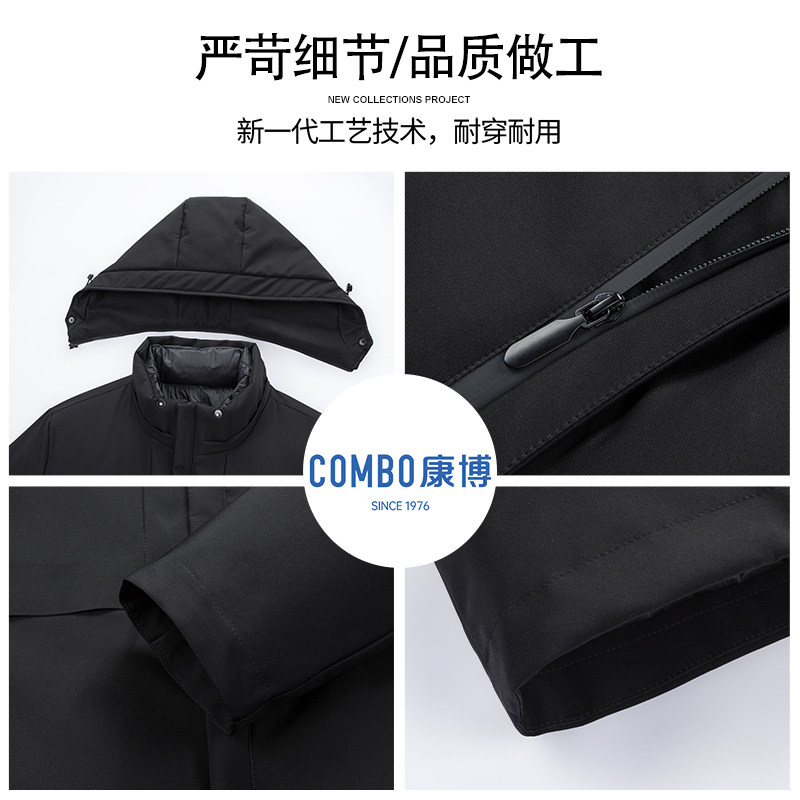 combo/康博冬季新款鹅绒保暖羽绒服男士连帽可拆卸内胆商务外套