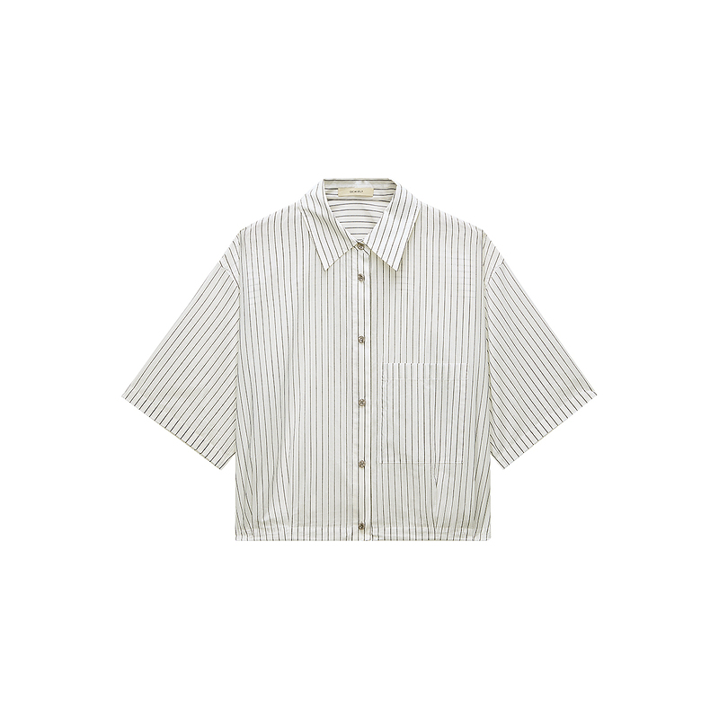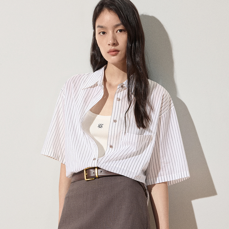OCHIRLY欧时力 色织丝棉条纹短袖衬衫女防晒休闲上衣2025夏季新品