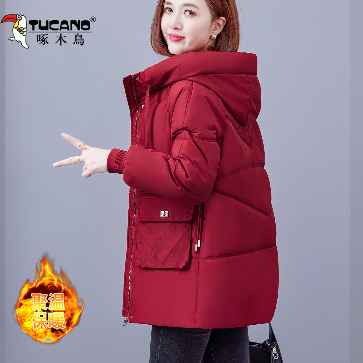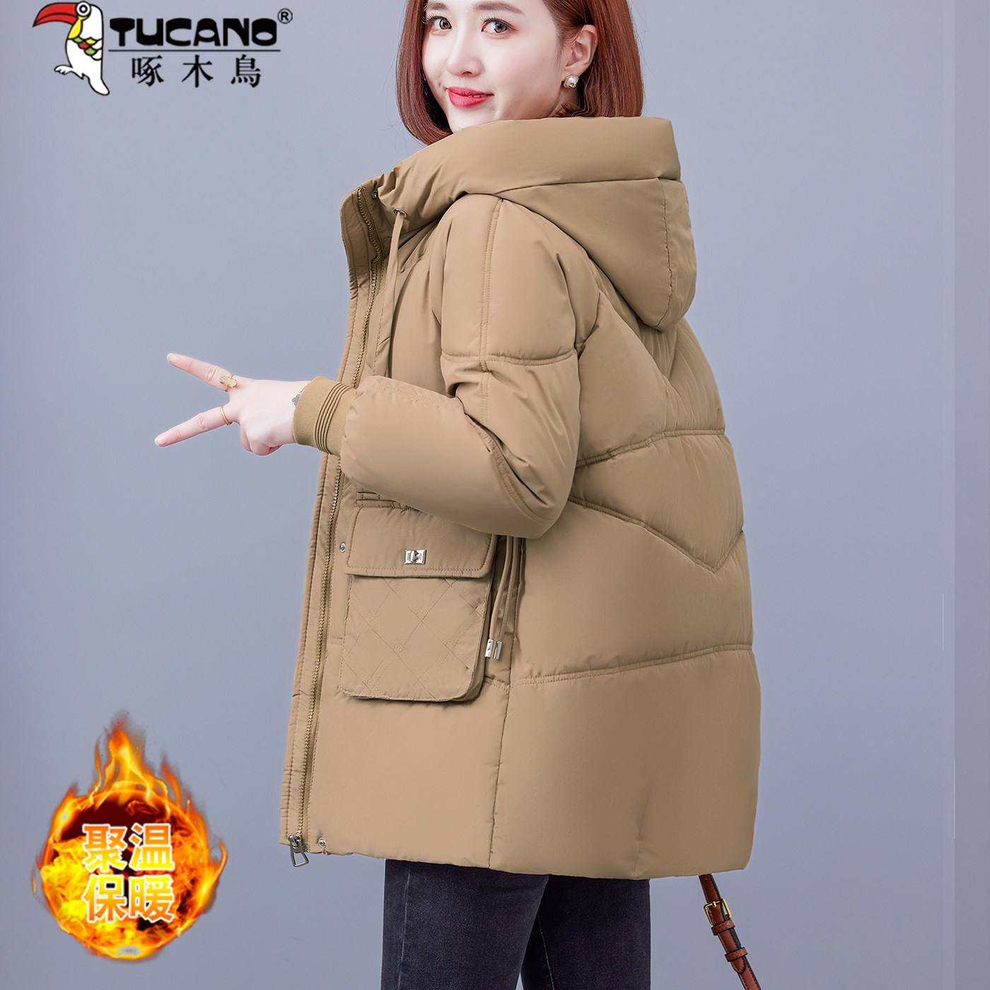 啄木鸟羽绒棉服女冬季中长款2025新款妈妈装保暖棉衣女士大码外套