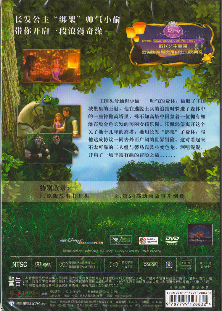 正版卡通 魔发奇缘DVD 长发公主 D9 迪士尼儿童经典动画电影光盘