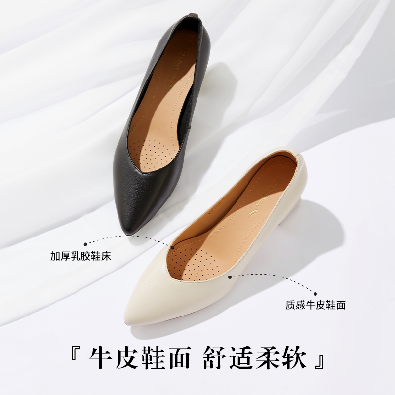 红蜻蜓女鞋春新款一脚蹬真皮尖头