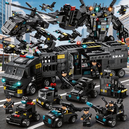 2026新款城市特警察大楼指挥车积木机甲益智拼装儿童男孩玩具礼物