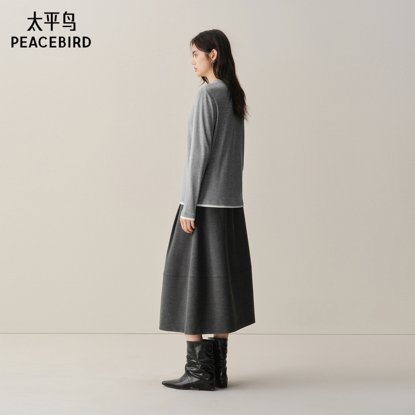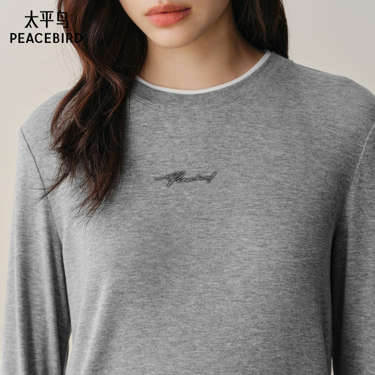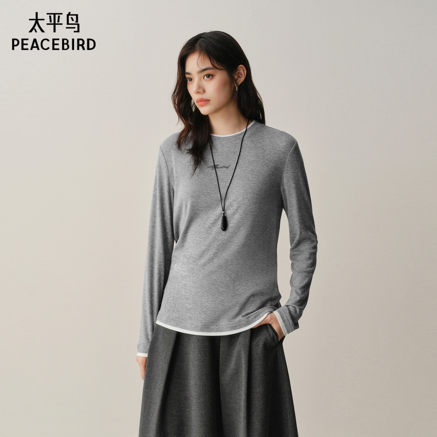 【商场同款】太平鸟冬季新款撞色假两件天丝羊毛长袖T恤A1CPF4364