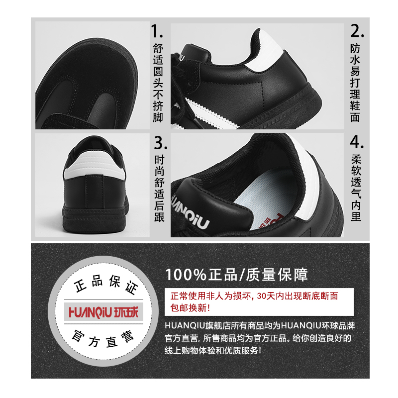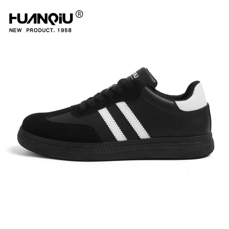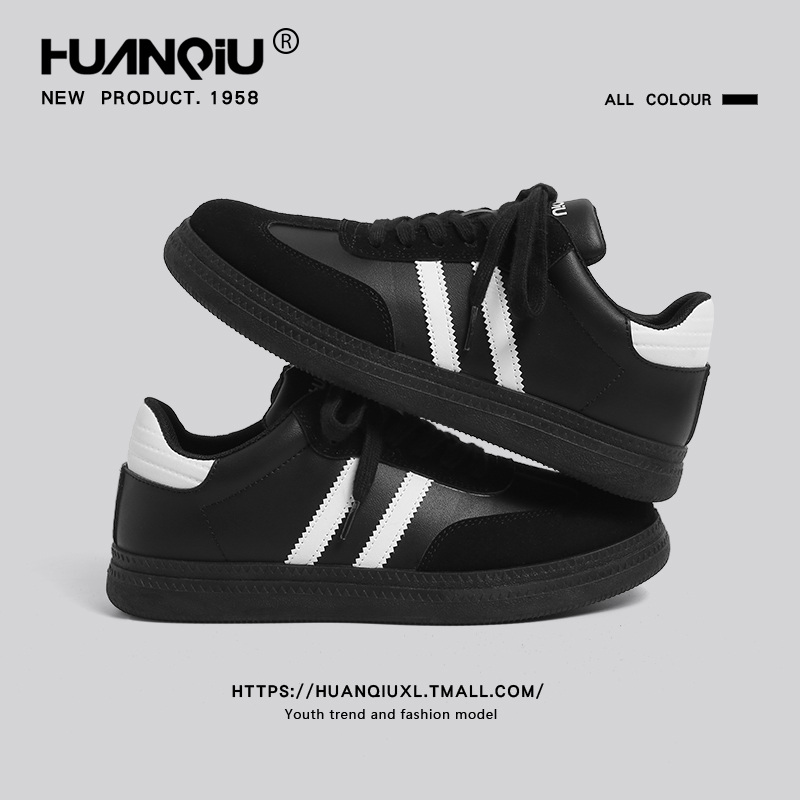 环球黑色德训鞋男款2025新款秋季男士时尚小黑鞋百搭休闲运动板鞋