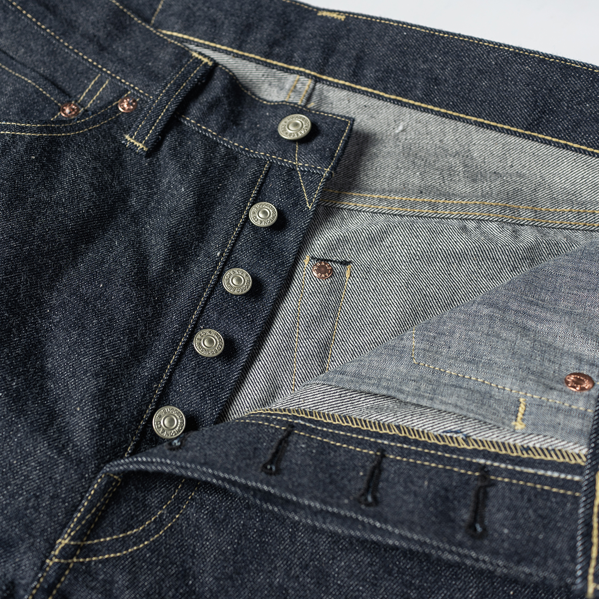 恶犬BRONSON 46801XX海军福利社原色赤耳丹宁14oz高腰直筒牛仔裤
