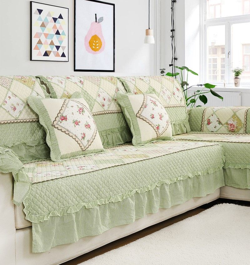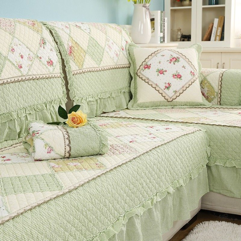 韩式温馨田园绗缝纯棉布艺 组合四季F全棉沙发垫沙发巾 防滑坐垫
