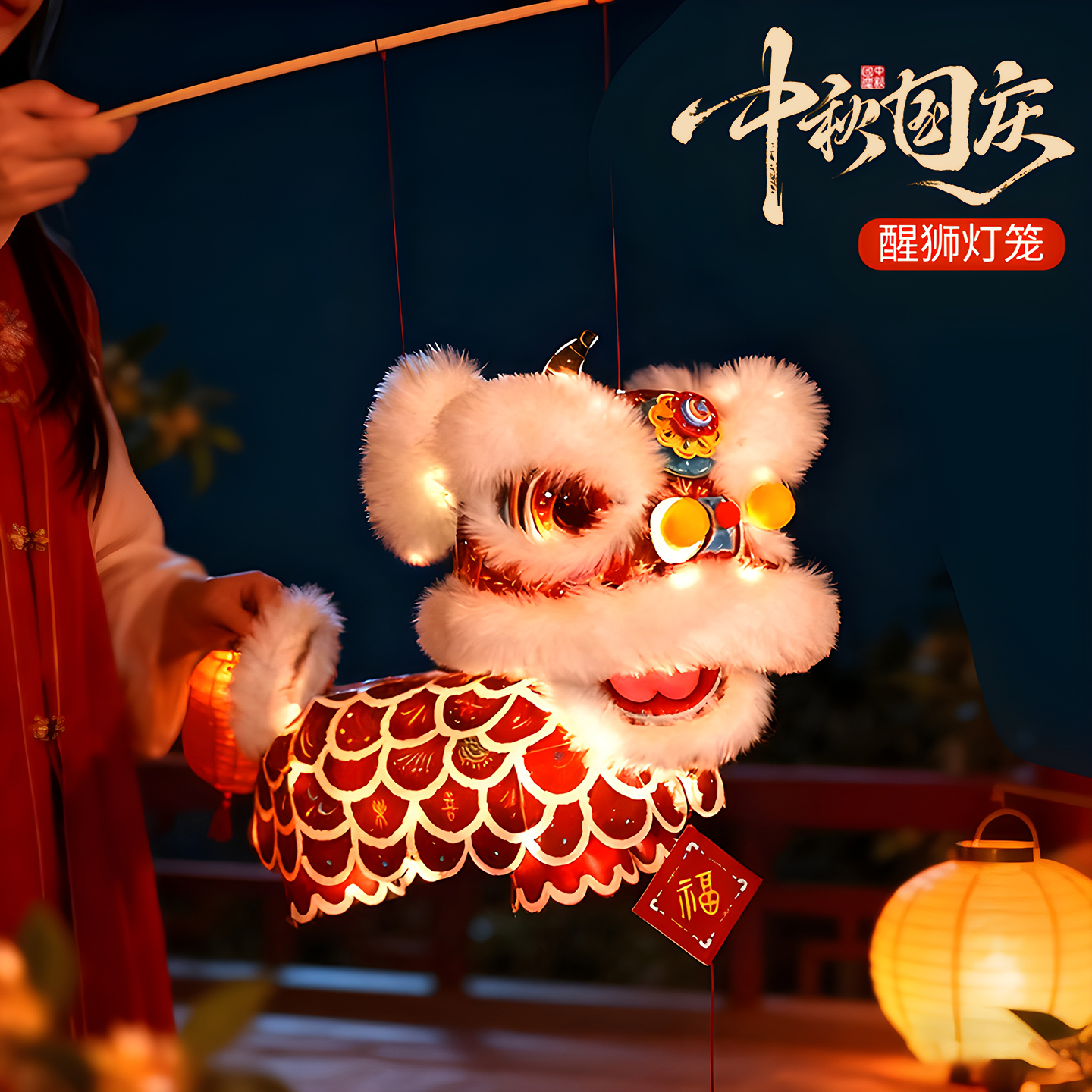 2025新款中秋节醒狮灯笼手工diy材料包儿童亲子学生手提非遗花灯