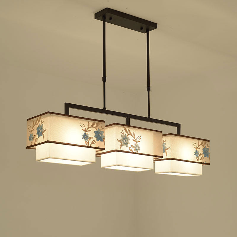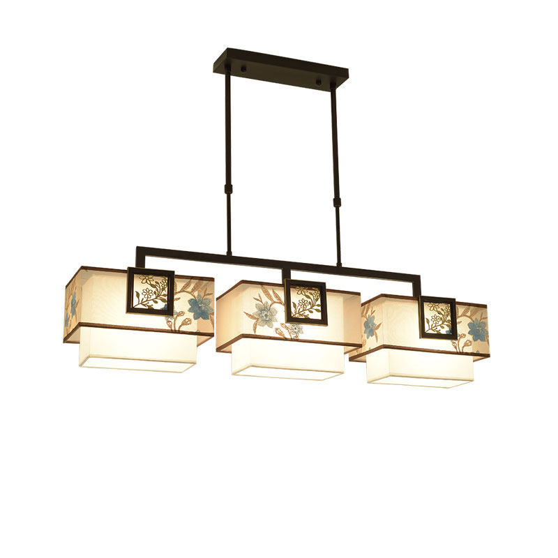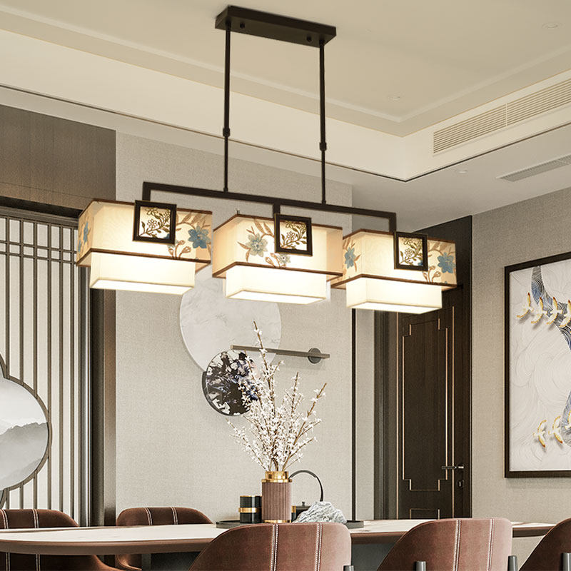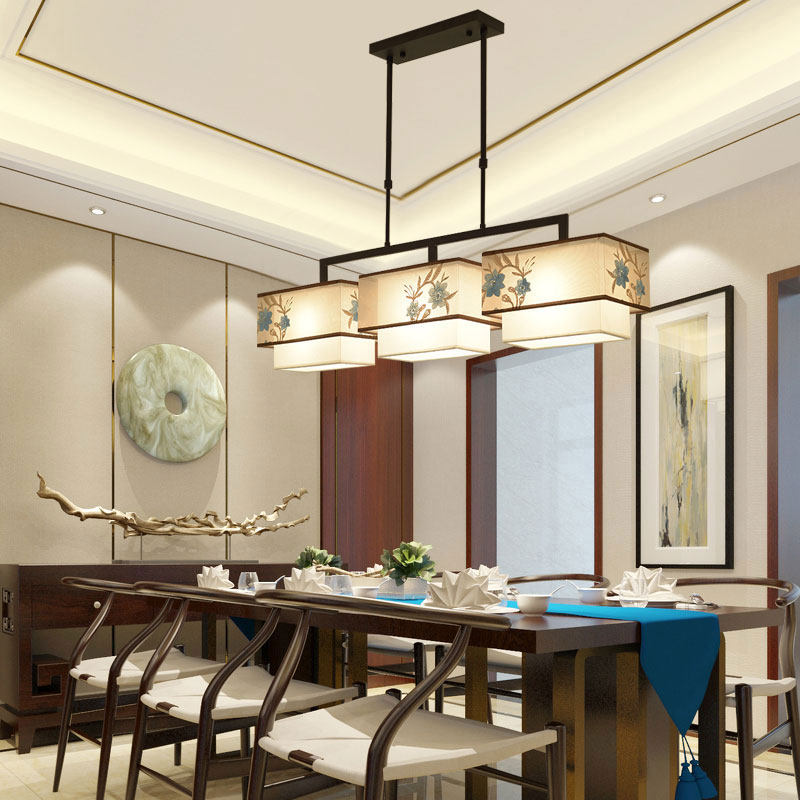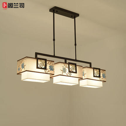 新中式灯具中国风禅意长方形三头餐桌吊灯简约创意吧台书房餐厅灯