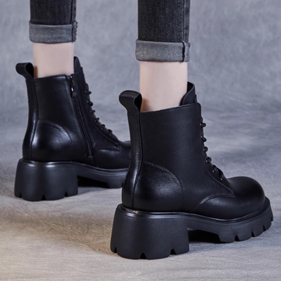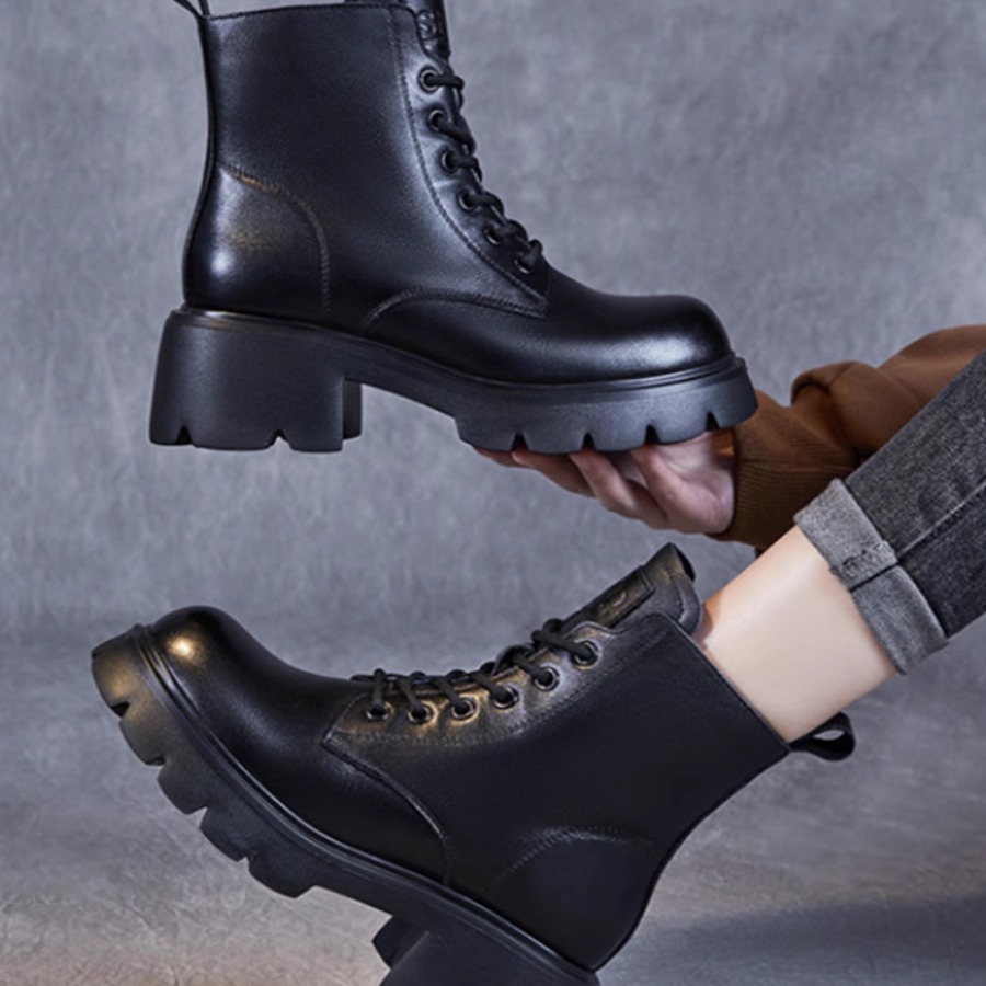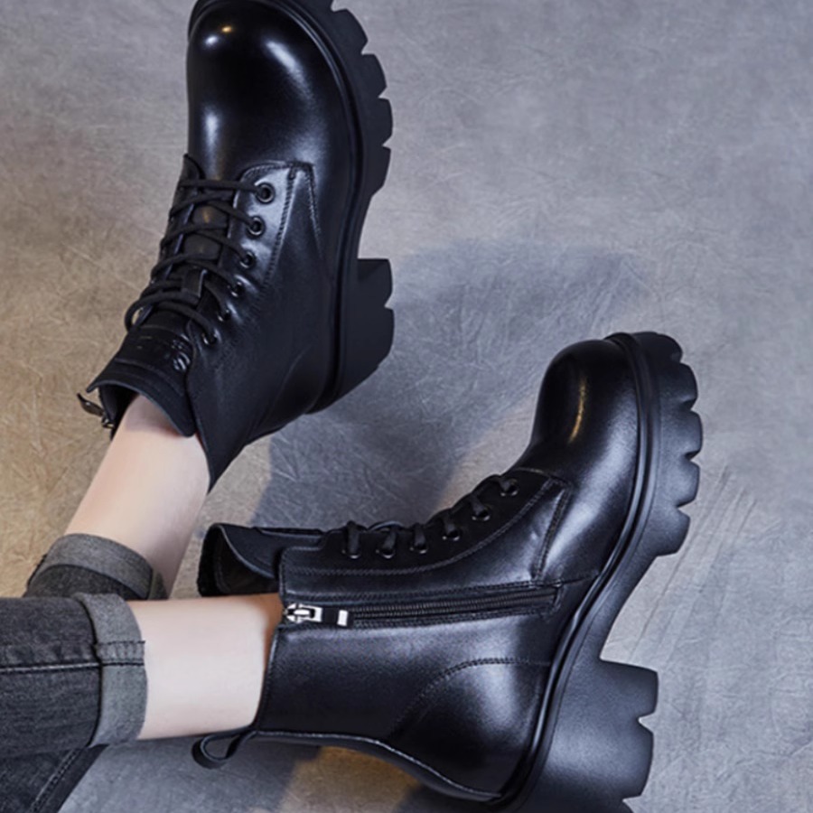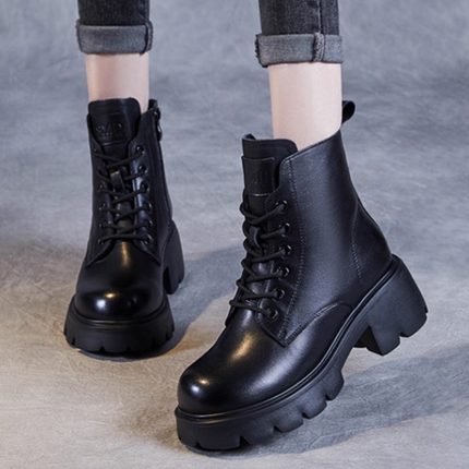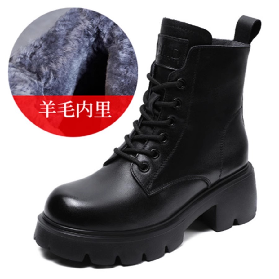 真皮羊毛马丁靴女鞋秋冬新款加厚保暖靴子高跟英伦风厚底短靴棉鞋