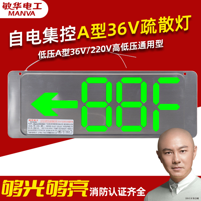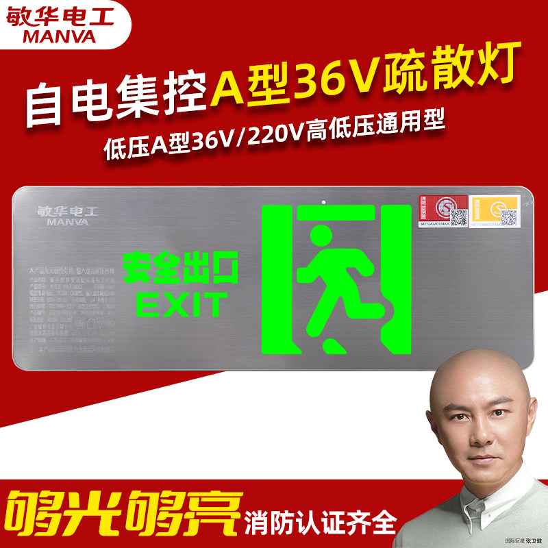 敏华电工不锈钢A型36V220V通用消防疏散指示灯应急照明灯安全出口